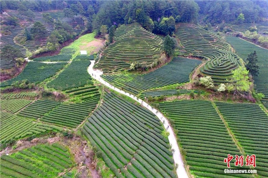 航拍武夷山星村镇燕子窠生态茶园。(图片来源:中新网)