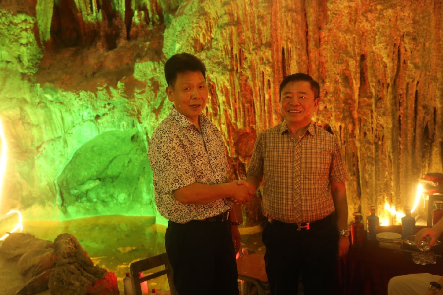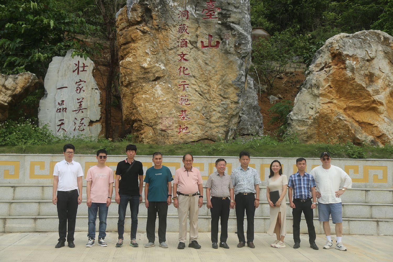 朴实爽朗的酒庄负责人开着上百万的路虎车领着乡亲们早早在洞门外等候,向远道而来的嘉宾又是敬茶又是递烟,动听响脆卷舌的土著壮语在山峰之中回响,客人错以为是惊动山神,龙门水都苏主席说,这里山美水美人更美,好客的壮乡人都喜欢用三大碗美酒迎接贵客,假如你能听到龙泉美酒回音,便是得道者多助来此了。大家哈哈大笑走进燕台山洞藏酒文化示范基地。