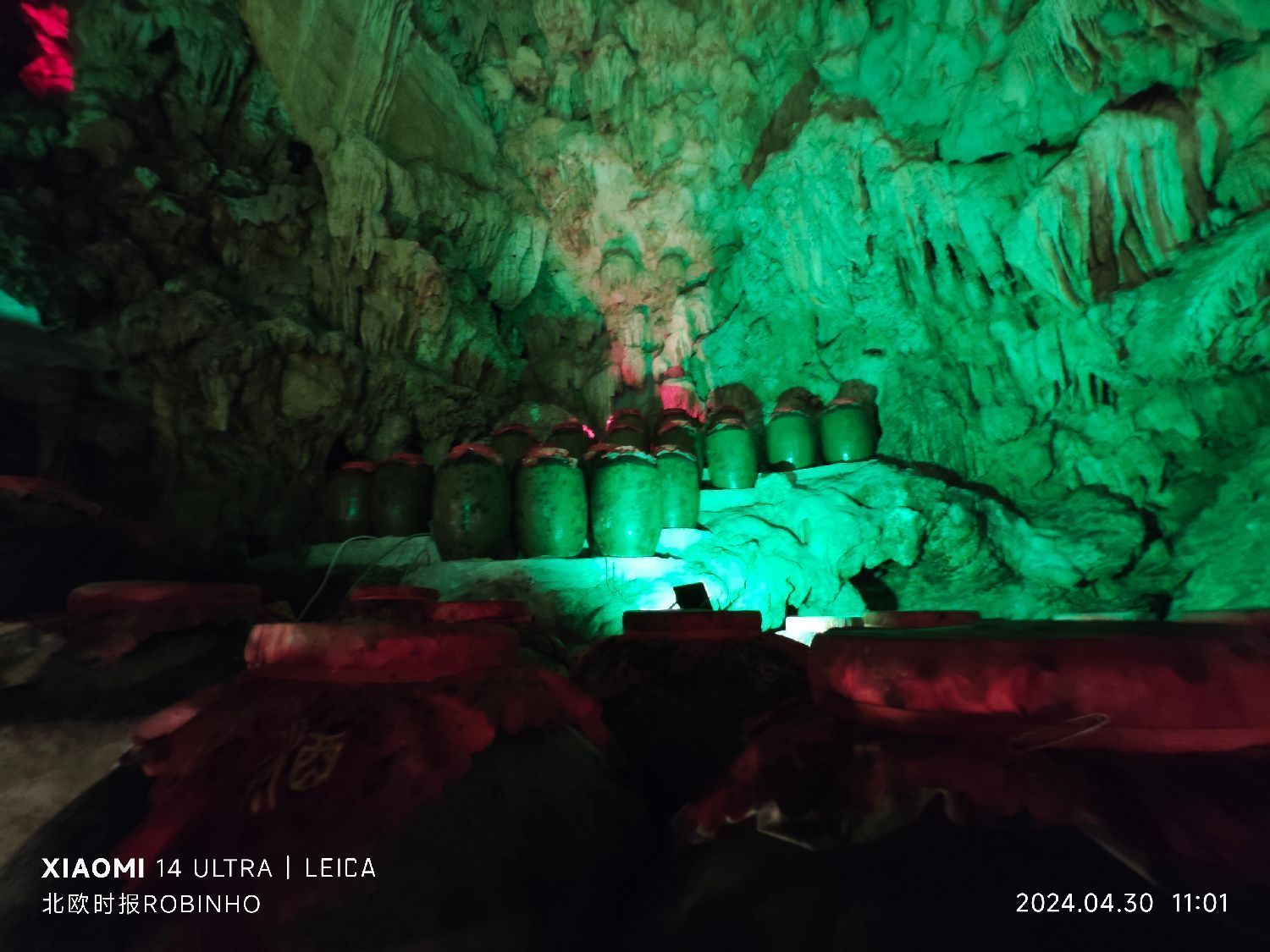 封坛的燕台山纯粮食酒在天然溶洞中深藏数十年,在钟乳石滴水穿越时光中发酵,美轮美奂,香远益清,天下美酒也!/北欧时报图(本报南宁马山讯)在中国长寿之乡”一广西南宁市马山县周鹿镇大北屯,有一处山脉,远观像神鹰飞燕,一座座奇形峻美的山峰,有的像睡美人,有的像巨型犀牛,有的像神兽鹿角,有的像驼峰或神龟,一座座屹立在十万山脉之中。在距离马山县城六十里地处,听说山野之间隐藏着一处巨大的溶洞,洞中宽大无比,还有地下河穿越山洞2公里多远,巨大的溶洞深不可测,洞中的天然钟乳石更是造化神秀,绝甲天下。从山上远眺,山下良田万顷,一片片人间仙境的景象。顺着山间溪流,绿油油的稻田随着春风拂面,香远益清,从整齐的良田和乡村新风貌,你完全可以相信这里世代勤劳的人们和牧羊耕读的模范,除了读书人多,五谷丰足之外,这里竟然盛产一款纯粮食美酒销往国内外,当你走进大北屯燕台山,你自然不可小看这座燕台山。远处望去正如飞燕敞开翅膀把山脉围住,山脉之间还有几座欧式红屋别墅,屋顶徐徐冒着蒸汽,把山脉和乡村连在一起,神仙都知道这里蕴藏着宝贝,走进一看,果不其然,清香醇厚的酒香扑鼻而来,让你梦入人间天堂,忘却了生在何年何月的感觉。