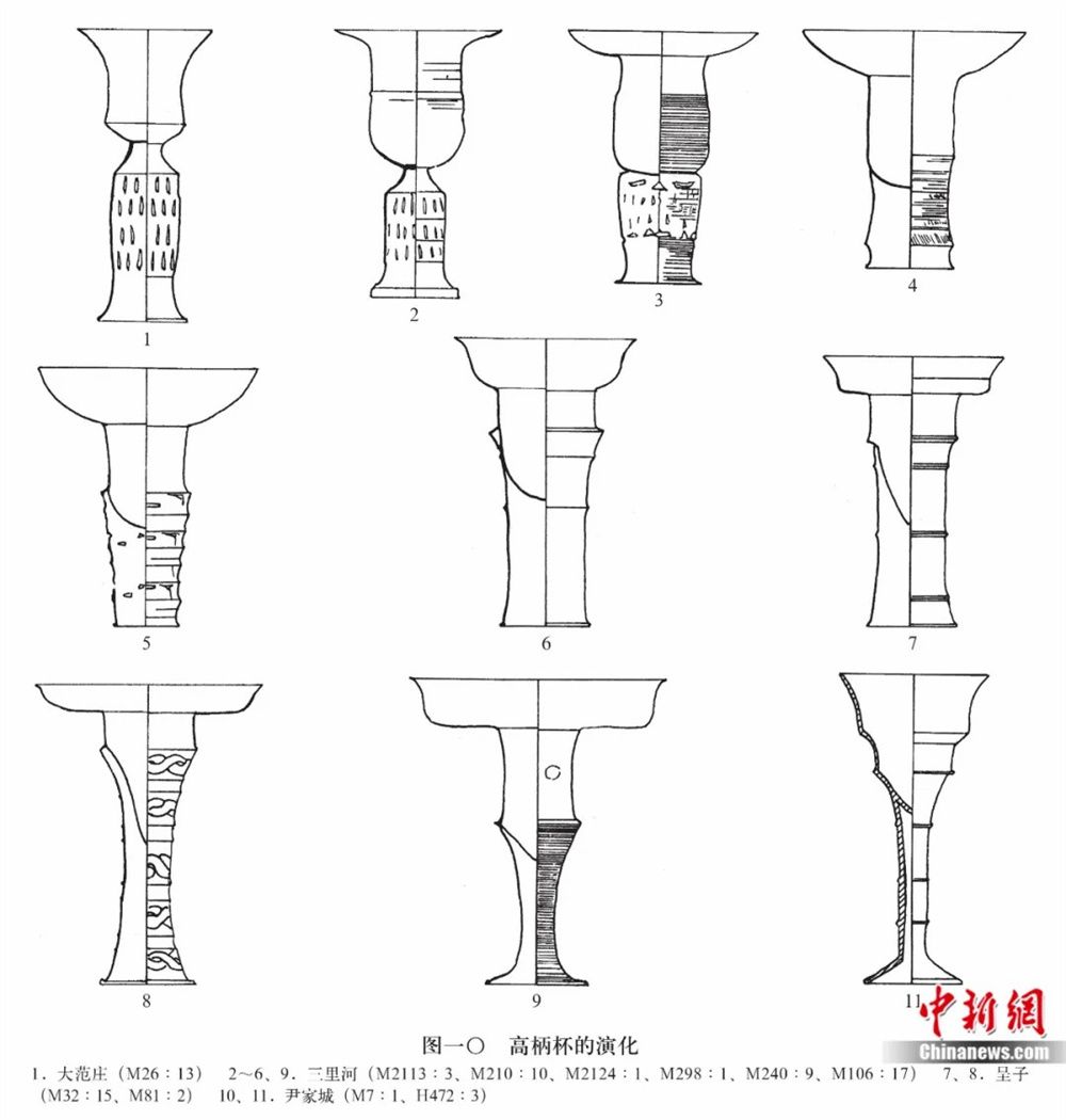 龙山文化时期蛋壳陶高柄杯的演化历程。(图片来源:受访者供中新网)