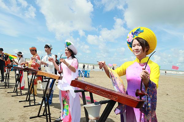 “哈节”是京族每年最盛大的传统民族节日,也是中国国家首批非物质文化遗产之一。哈节期间,京族人身着民族盛装,到海边歌唱祈求风调雨顺、渔业丰收,在海滩弹奏独弦琴。中国的京族和越南主体民族语言相通,习俗相近。每年京族“哈节”和越南芒街的“哈节”举办之际,两地民众均会互访庆祝,交流情谊。