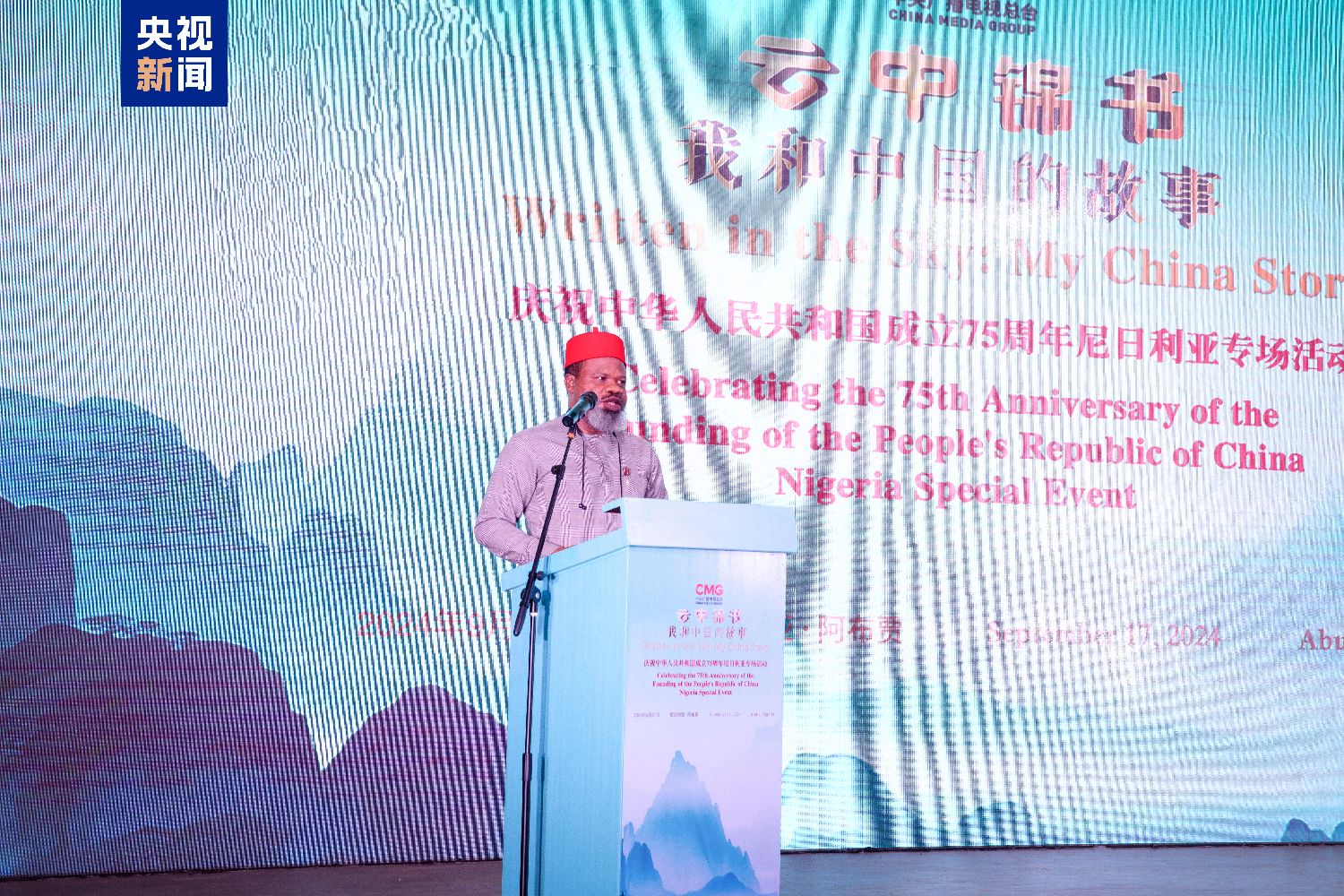 当地时间9月17日,由中国中央广播电视总台主办的“云中锦书:我和中国的故事”庆祝中华人民共和国成立75周年尼日利亚专场活动在阿布贾举行。中宣部副部长、中央广播电视总台台长慎海雄作视频致辞。中国驻尼日利亚大使于敦海、尼日利亚联邦众议院尼中关系委员会主席贾法鲁·雅库布、尼日利亚信息与国民宣传部公共关系和礼宾司司长苏莱曼·哈鲁纳、尼日利亚记者联合会主席克里斯·伊希古佐出席活动并致辞。来自尼日利亚、南非、加纳、塞拉利昂、南苏丹等国政府官员、媒体负责人以及文化教育机构代表近百位嘉宾参加活动。