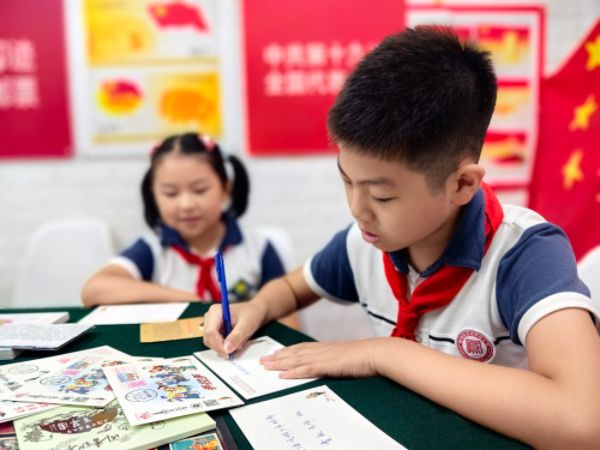图说:小集邮爱好者们齐聚红色少年主题邮局采访对象供图下同