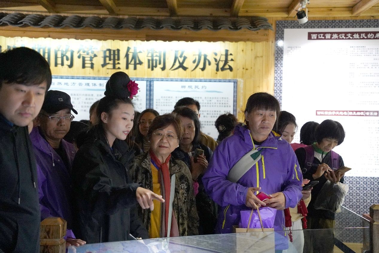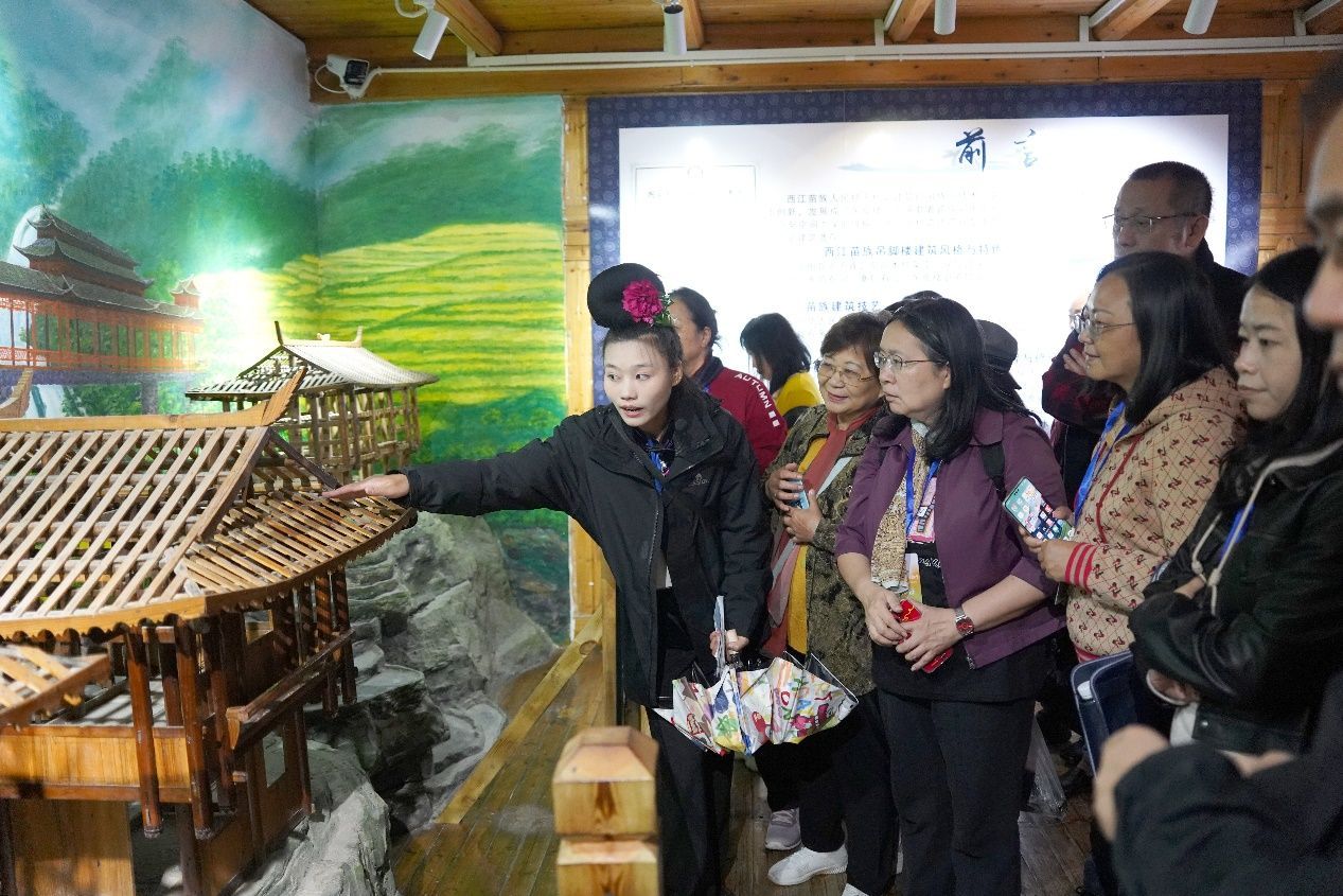 (本报贵州讯)10月14日,“追梦中华·多彩黔行”2024海外华文媒体贵州采访行走进雷山县,11个国家的19家海外华文媒体来到西江千户苗寨体验极具特色的民俗风情,领略独具一格的建筑风貌。