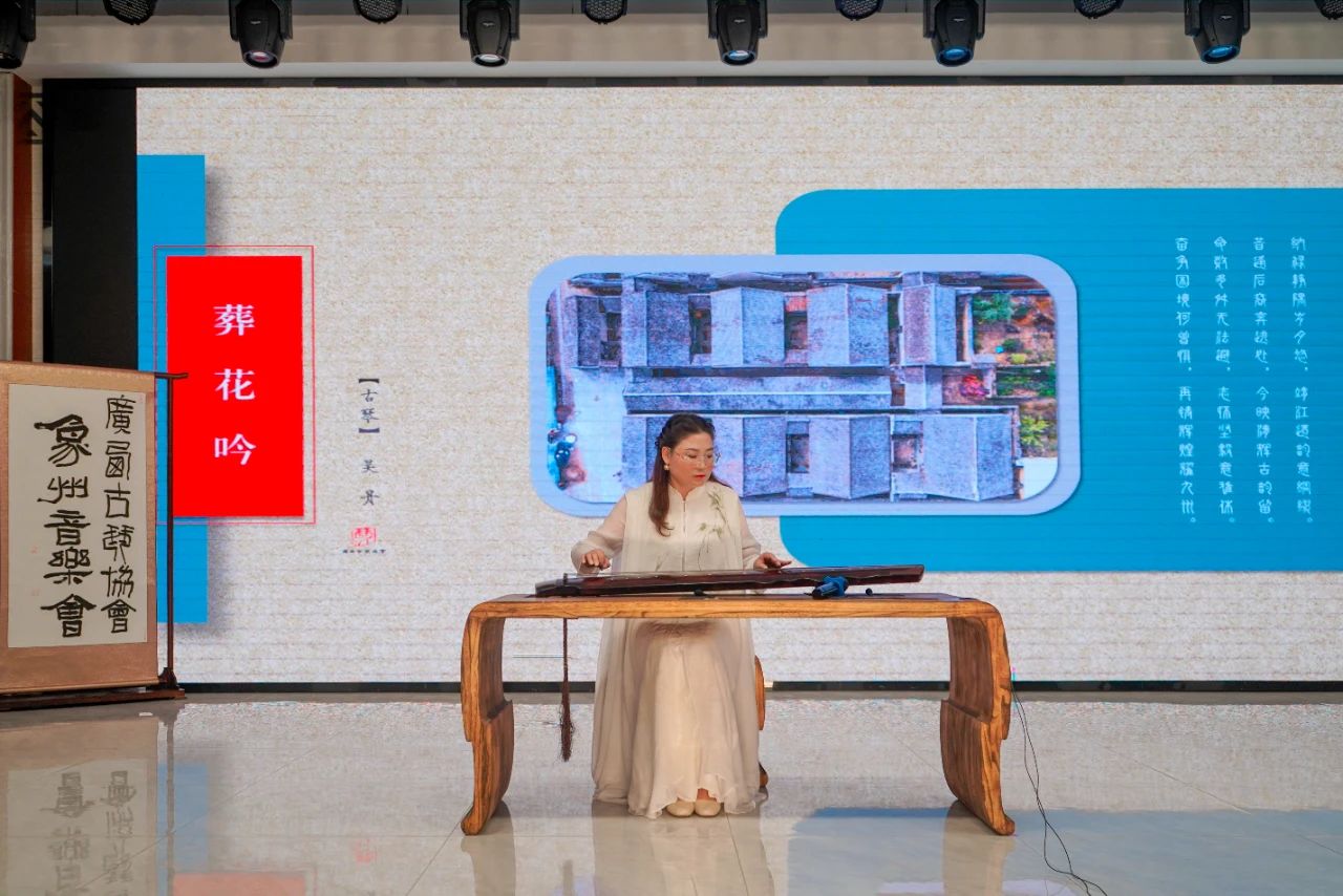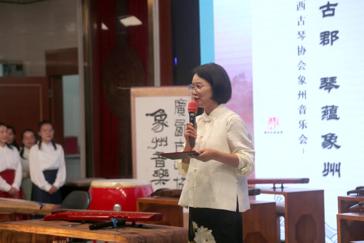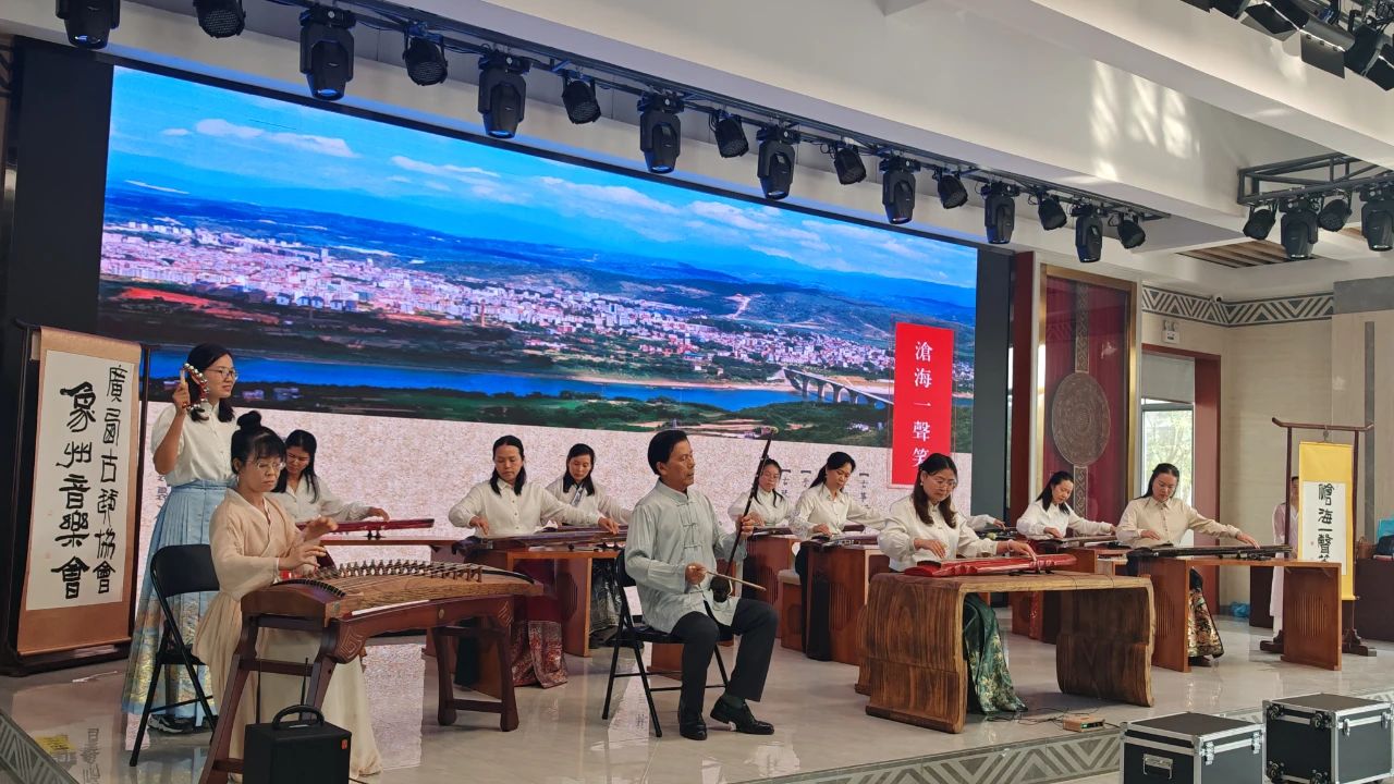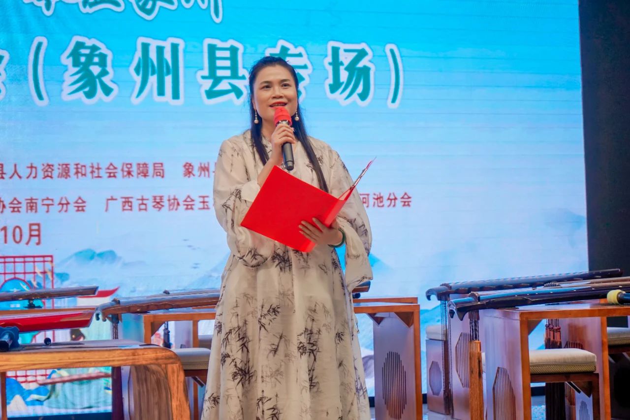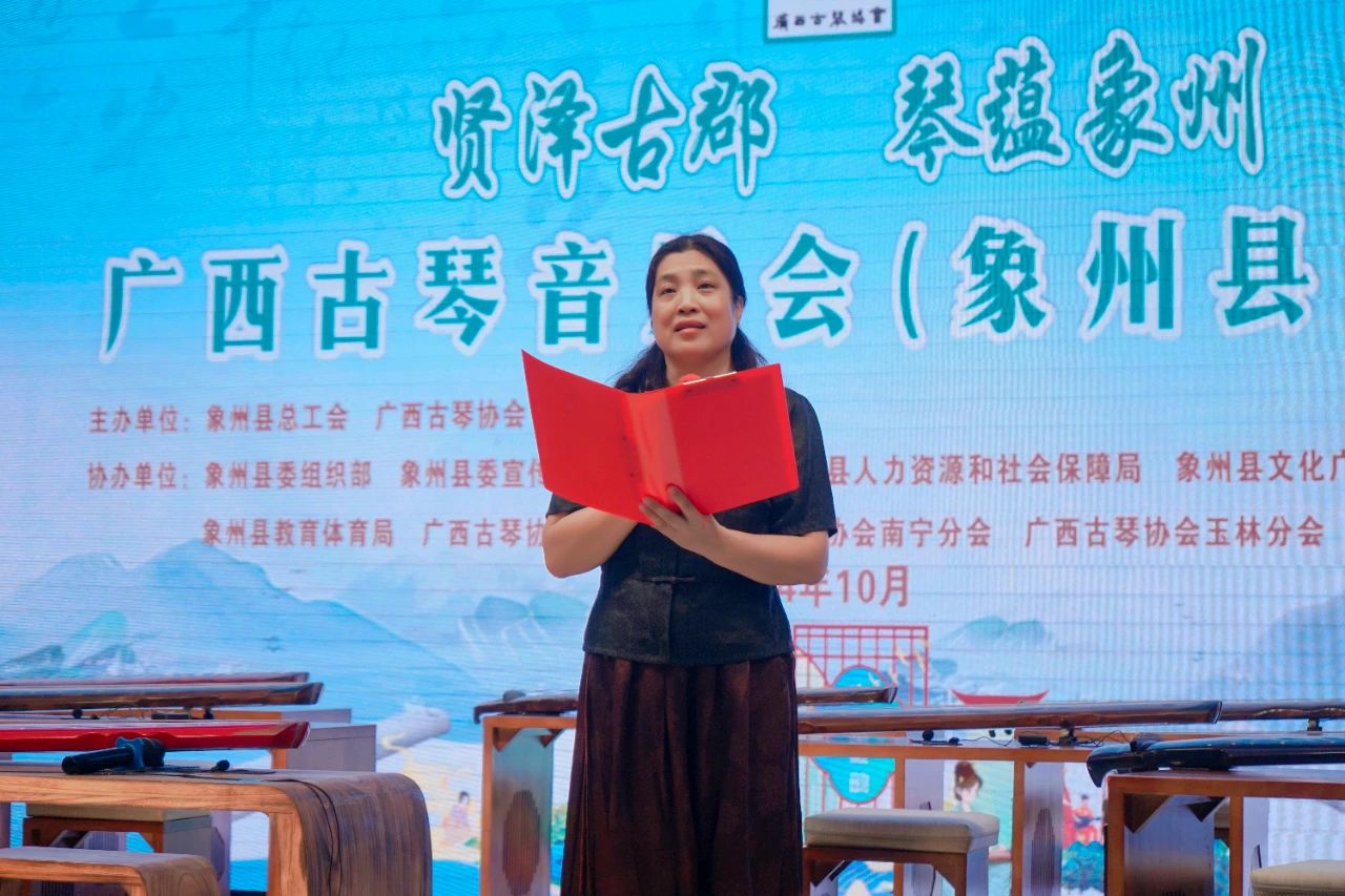 In the golden autumn of October,the ancient melody resonates with kindred spirits.On the evening of October21,the concert by the Guangxi Guqin Association in Xiangzhou concluded successfully at the Xiangzhou Workers'Cultural Palace.The event began with speeches from Li Junping,President of the Guangxi Guqin Association,and Wu Yinyan,Deputy Director of the Xiangzhou County People's Congress and Chairwoman of the Federation of Trade Unions.Over300guests and guqin music enthusiasts from within and outside the region,along with more than90,000online viewers,gathered to enjoy this musical feast of millennia-old guqin melodies,hosted by the Guangxi Guqin Association and Xiangzhou County Federation of Trade Unions.