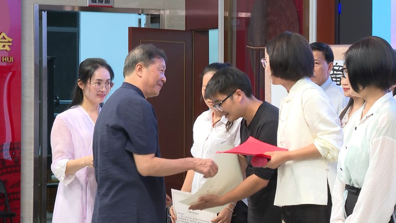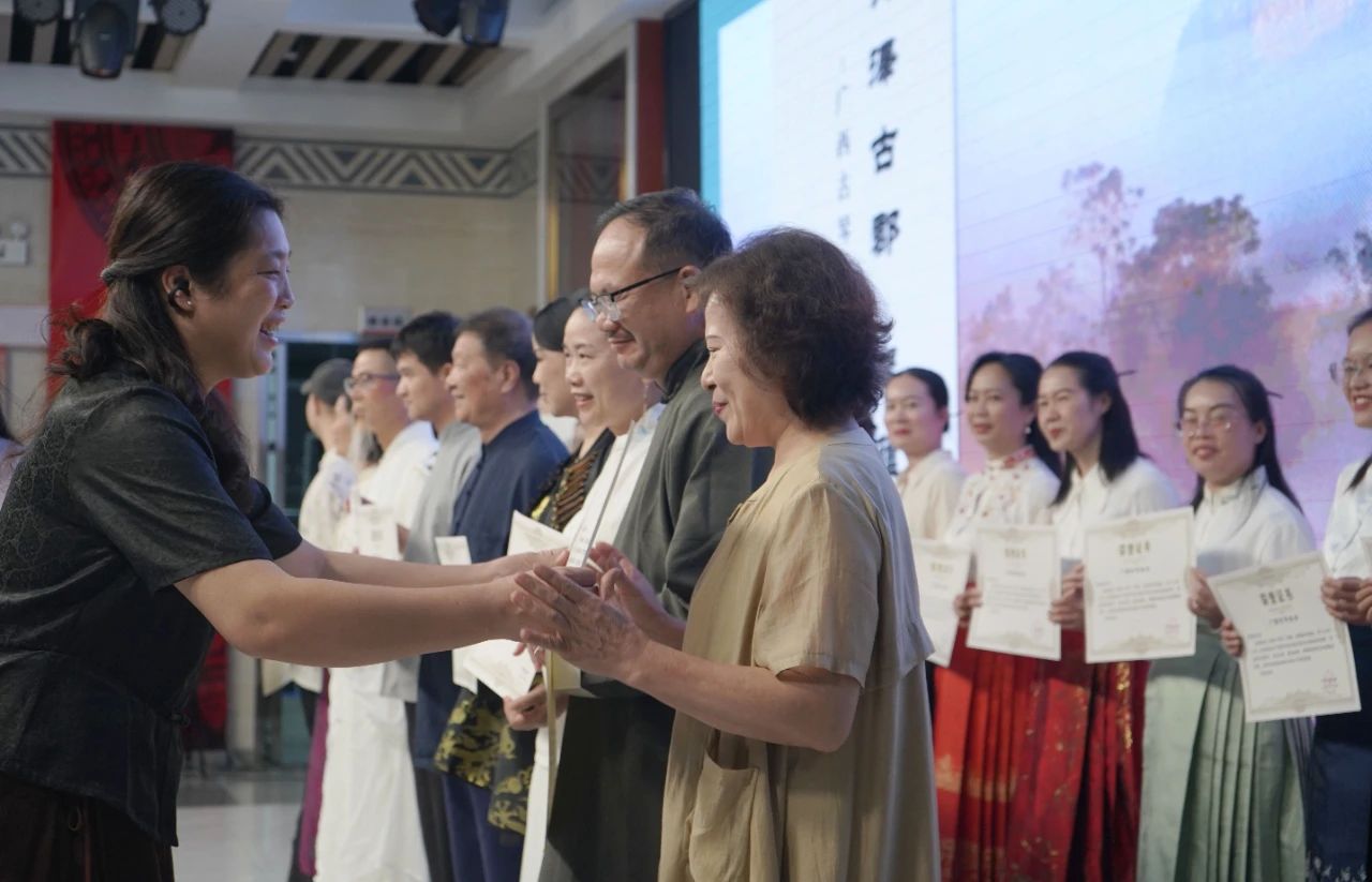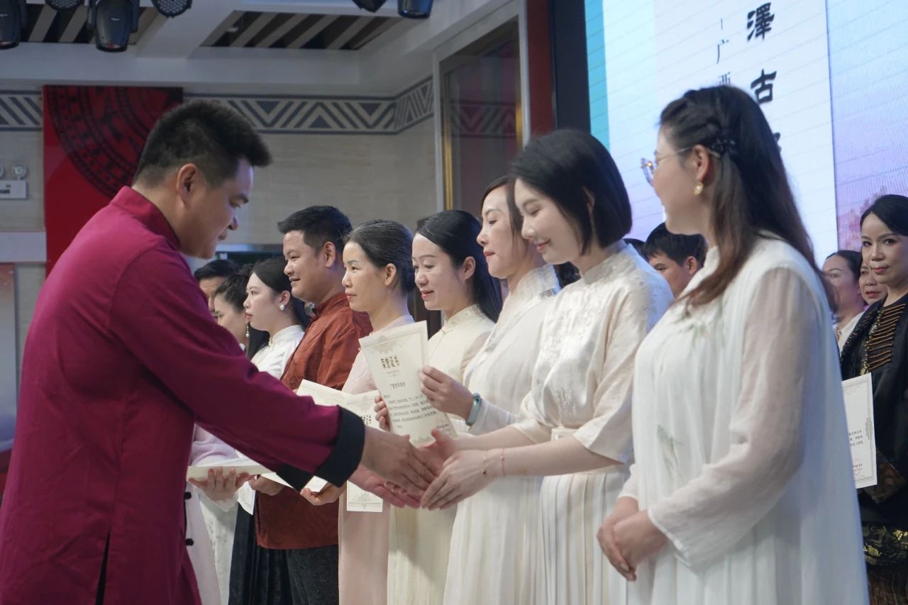 广西古琴协会会长李俊萍、象州县人大副主任,象州总工会主席吴银燕、广西古琴协会副会长朱文武、象州县总工会党组书记银中辉颁发荣誉证书。