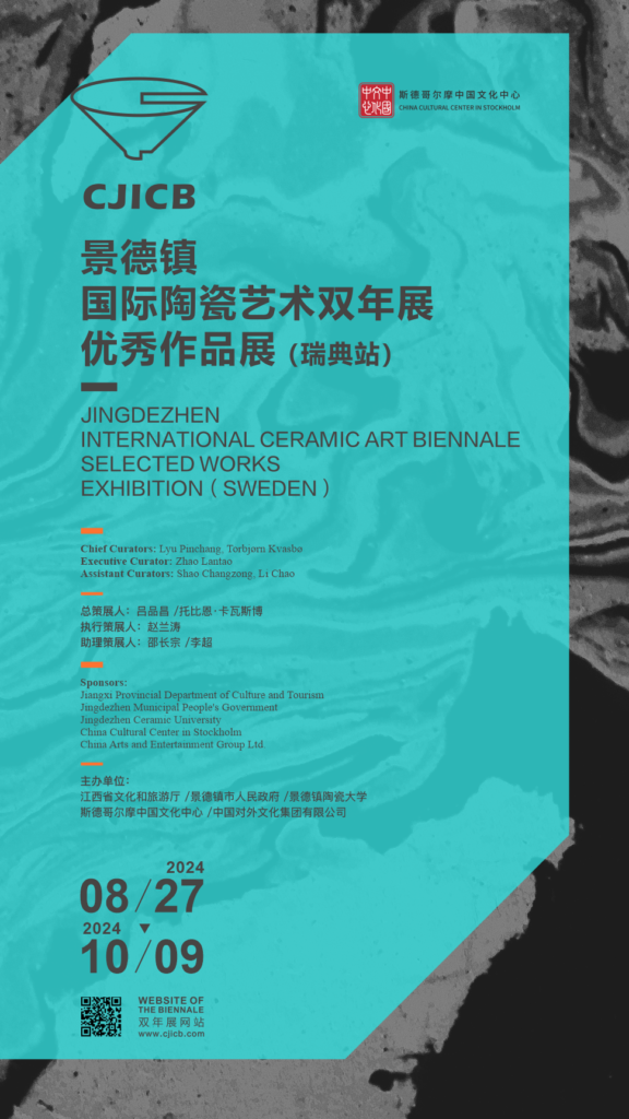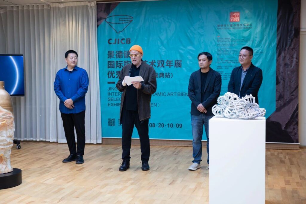 8月20日,由江西省文化和旅游厅、景德镇市人民政府、景德镇陶瓷大学、斯德哥尔摩中国文化中心、中国对外文化集团有限公司主办,江西省美术馆、景德镇陶瓷大学美术学院、景德镇陶瓷大学博物馆、景德镇陶瓷大学设计艺术学院、中国对外艺术展览有限公司承办的“景德镇国际陶瓷艺术双年展优秀作品展(瑞典站)”在斯德哥尔摩中国文化中心举办全球巡展斯德哥尔摩站预展和导览活动。中国驻瑞典使馆文化参赞、斯德哥尔摩中国文化中心主任李蕊、景德镇陶瓷大学美术学院副院长邵长宗、赵兰涛、设计艺术学院副院长余剑峰、中国对外艺术展览有限公司高级项目经理李芸芸、瑞典陶瓷艺术家Torsten Jurell,以及近百位瑞典艺术家和中国文化爱好者参加了专场导览活动,共同感受陶瓷的艺术魅力。