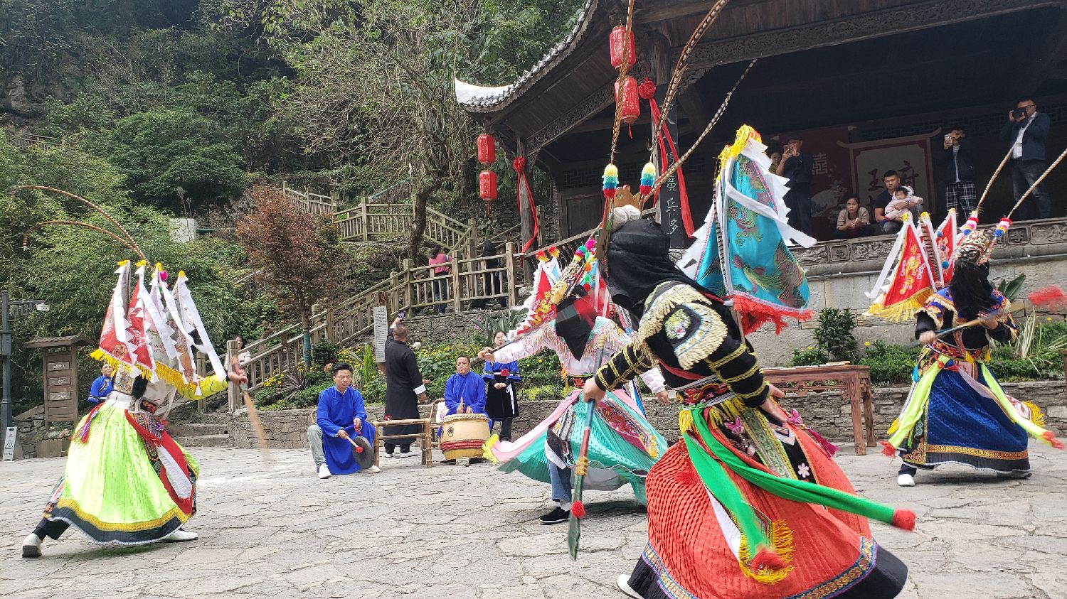 “地戏的表演形式非常独特,它融合了唱、念、做、打等多种艺术元素,既有戏剧的观赏性,又有祭祀的神秘感。