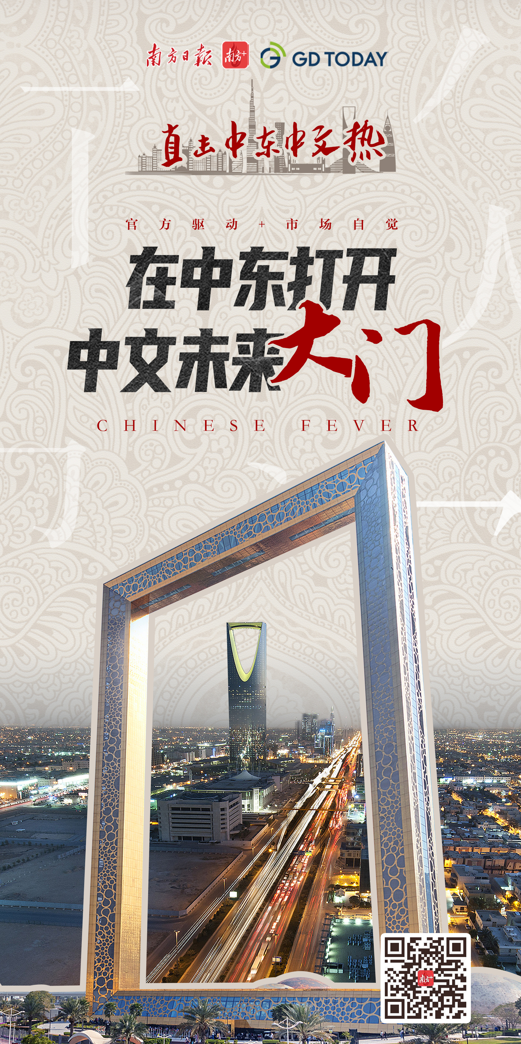 目前,阿联酋、沙特、埃及等阿拉伯国家均已在国民教育体系中正式实施中文课程。阿联酋是首个“吃螃蟹”的国家,已有171所中小学校开设中文课程,学习中文的学生人数达到7.1万;沙特校园则于近日迎来175名中国教师,进入中文普及教育的实质阶段,同时,首都利雅得哈立德国王国际机场标识焕然一新,中文成为标识语言之一,引发该国媒体关注和民间热议。中文在阿联酋、沙特等中东国家何以不断升温?近日记者深度走访,一探究竟。南方日报、南方+、GDToday同步推出“直击中东中文热”系列融媒体报道,敬请垂注。