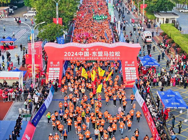 11月24日上午7点30分,2024中国-东盟马拉松在防城港市北部湾海洋文化公园鸣枪起跑。来自14个国家和多个地区的20000余名选手如约齐聚防城港,共同见证世界的脚步在防城港奔跑。