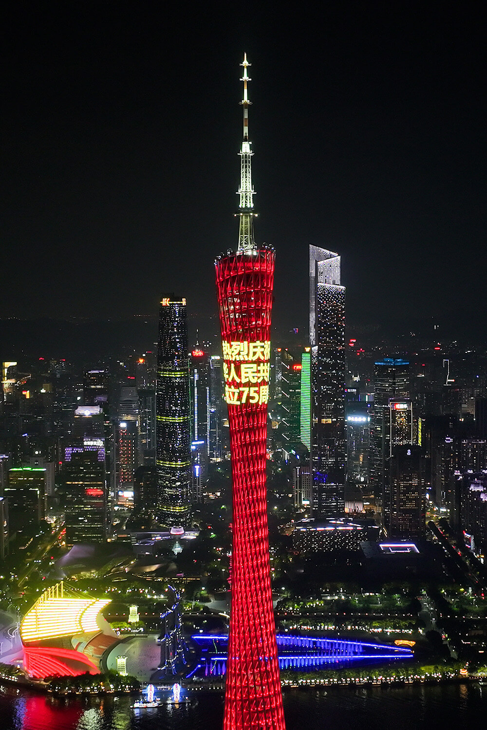 2024年9月27日晚至国庆期间,璀璨华灯点亮广州珠江两岸,光影闪烁、熠熠生辉,为中华人民共和国成立75周年送上美好祝福。钟志辉摄