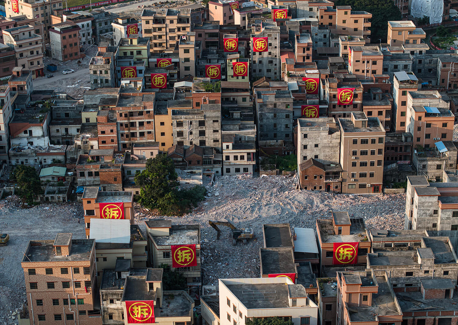 2024年5月16日,东莞洪梅镇,紧靠东莞西站的氹涌村正在进行城中村改造,现场机械正在作业,一些房屋已拆平,一些房屋已搬空,贴上大大的“拆”字。张由琼摄