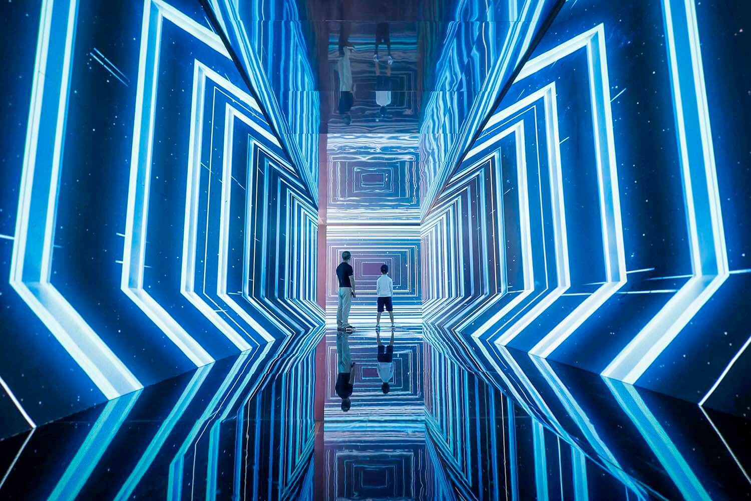 2024年5月26日,广东深圳文博会,一对父子在欣赏科技展示,随着音乐节奏充满了科幻感。鲁力摄