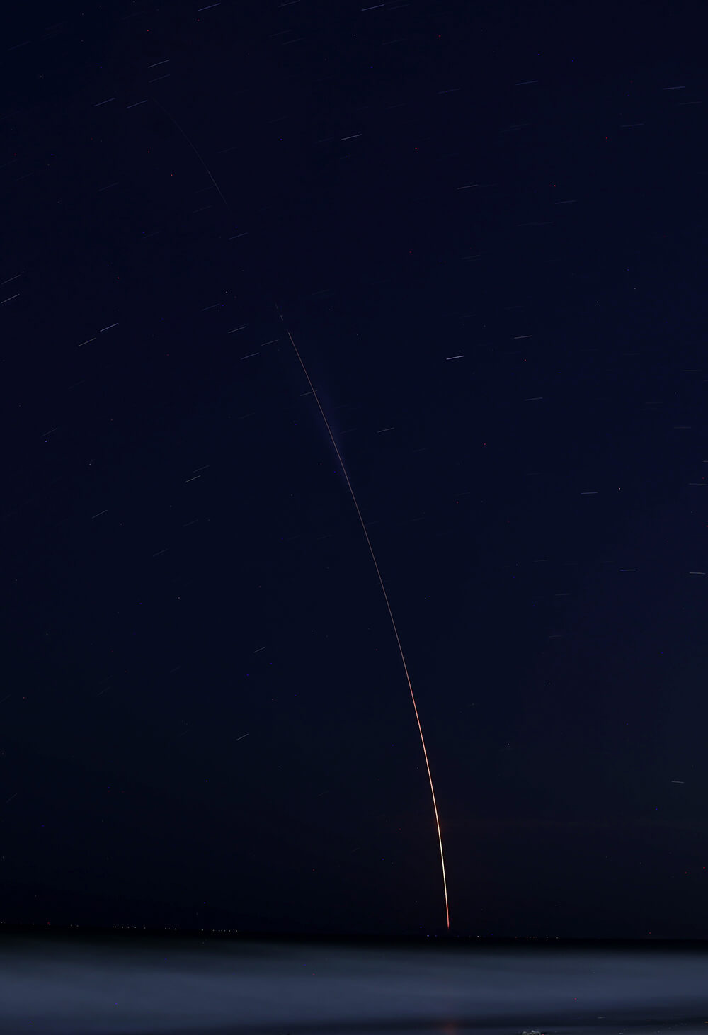 2024年11月30日,长征十二号遥一运载火箭从海南商业航天发射场发射升空。图为从湛江吴川拍摄的火箭轨迹。吴明摄