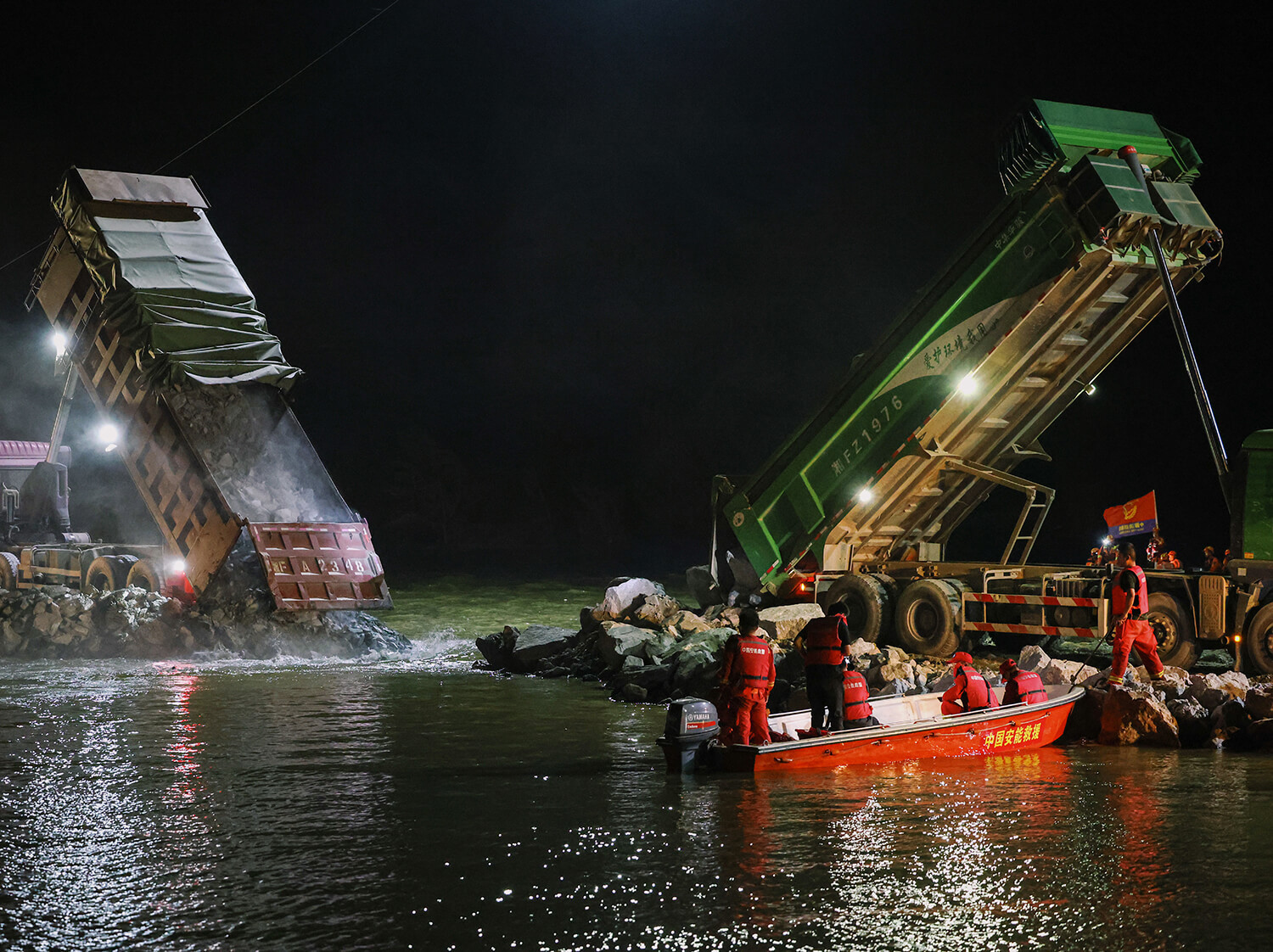 2024年7月8日晚,湖南省岳阳市华容县,洞庭湖一线大堤决口完成封堵。
