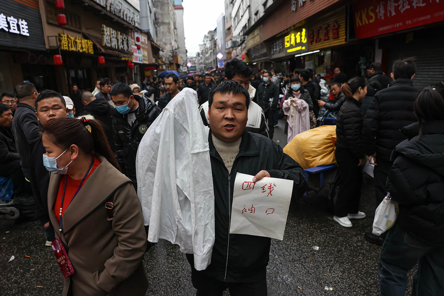 2024年3月2日,元宵节过后,广州大塘村招工街热闹非凡,制衣厂老板们拿着样衣前来招工。郑新洽摄