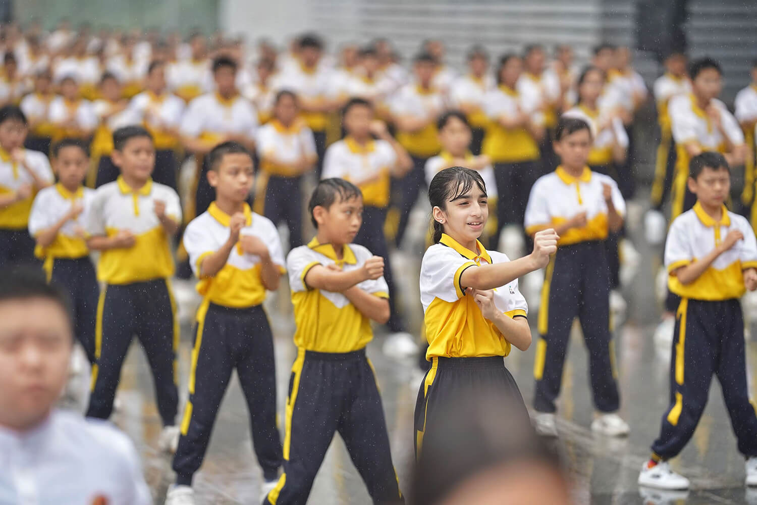 2024年6月8日,佛山南海樵山文化中心,2024年“文化和自然遗产日”广东主会场系列活动现场,千名武术爱好者雨中齐打咏春拳。戴嘉信摄