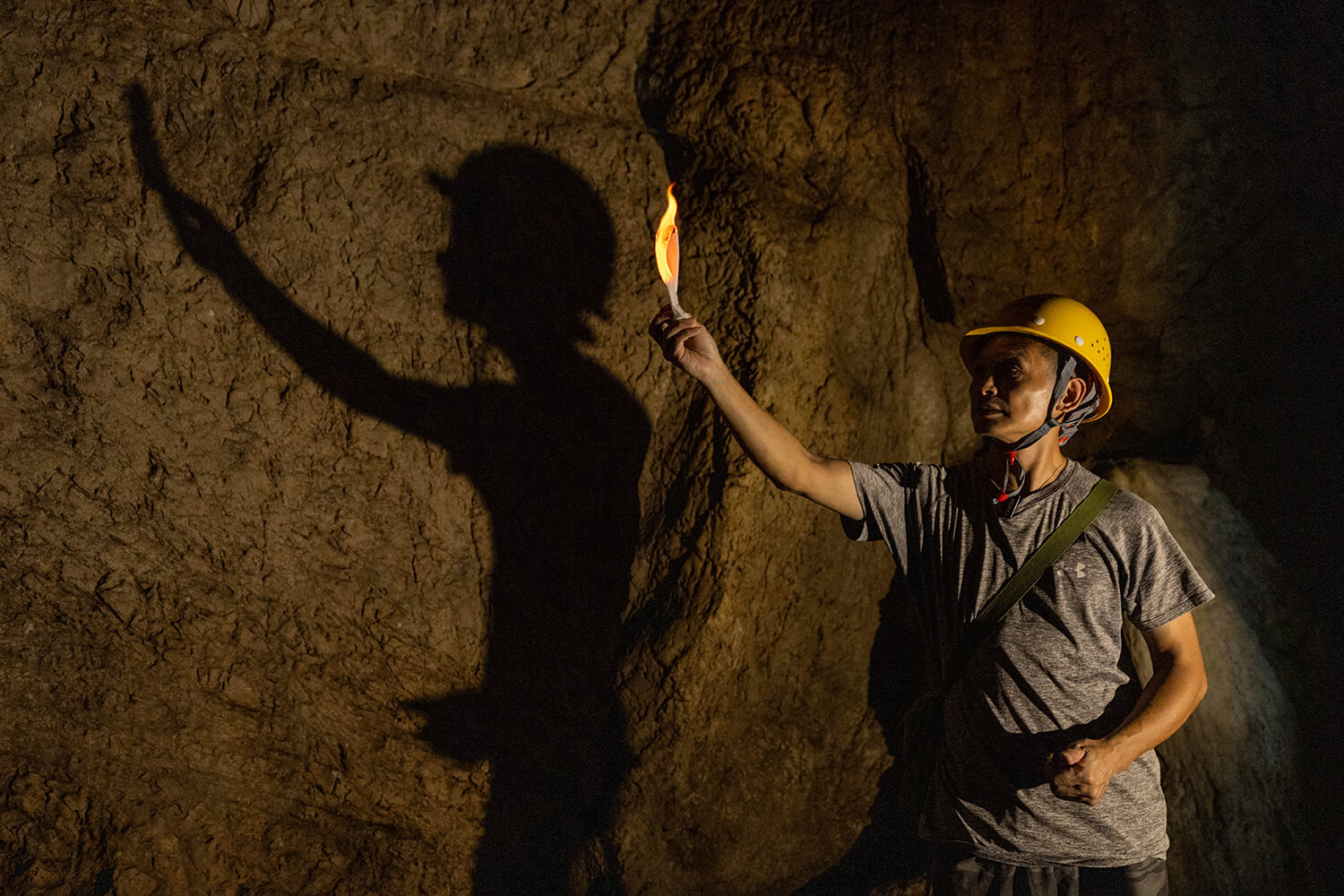 2024年9月3日,云浮郁南县博物馆馆员何英明正在一个洞穴内进行第四次全国文物普查工作。姚志豪摄