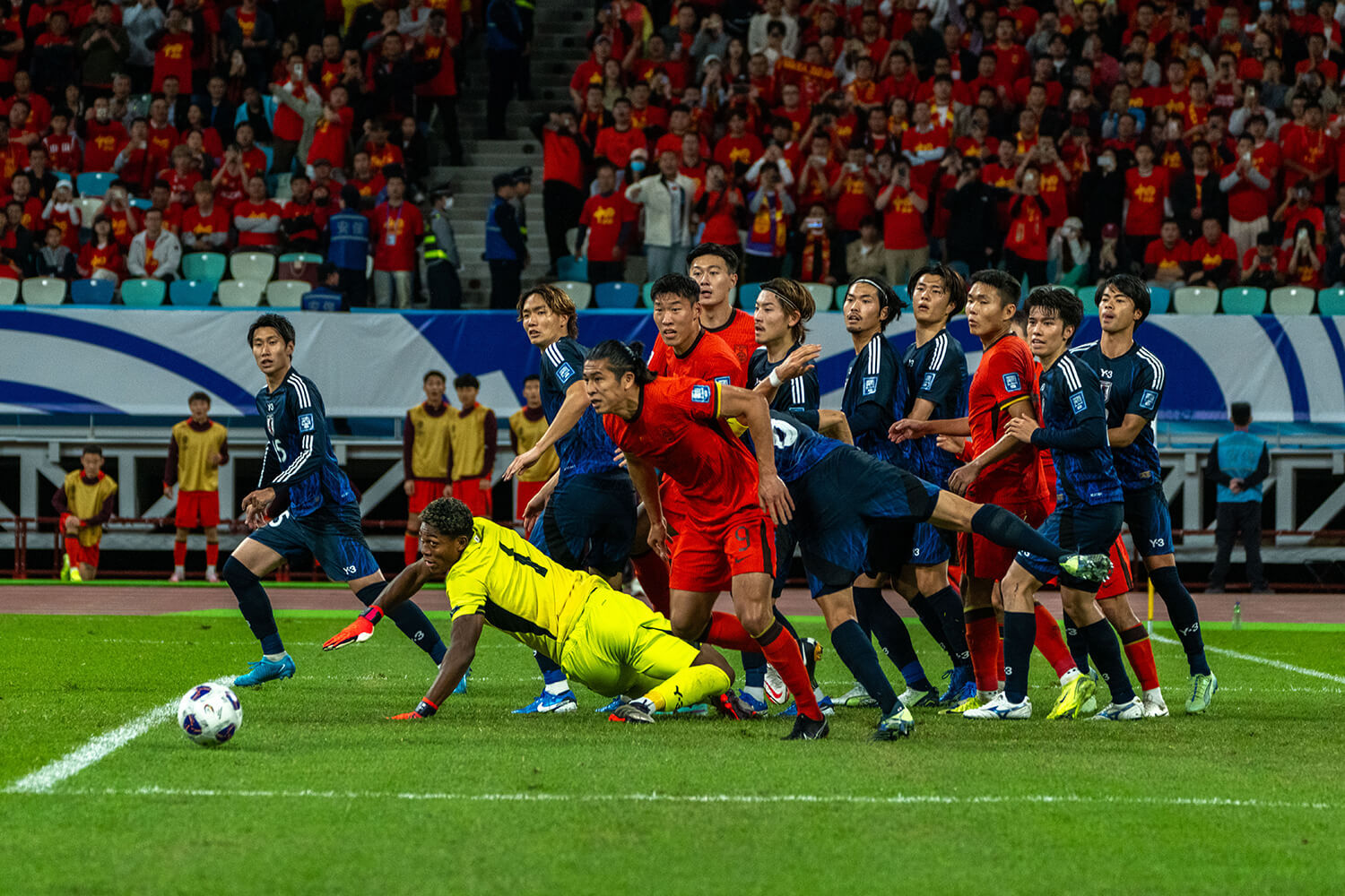 2024年11月19日晚厦门,世预赛亚洲区18强赛中国队主场对阵日本队,比赛接近尾声时中国队错失一次破门良机,最终1比3不敌对手。姚志豪摄