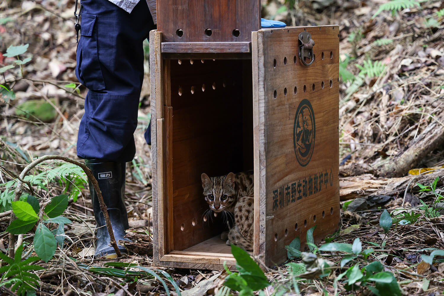 2024年2月1日下午,经过136天,编号为“202309191”的落单野生豹猫,在深圳梧桐山成功放归。朱洪波摄