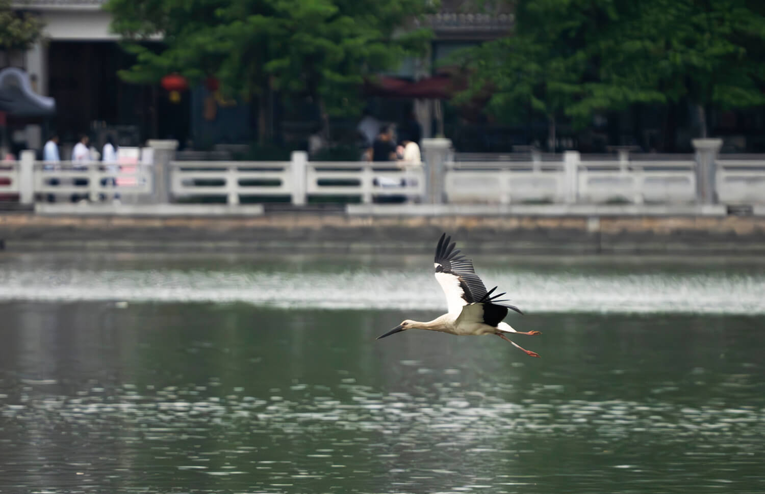 2024年4月9日,广州市区海珠湖迎来中国国家一级保护动物东方白鹳。董天健摄