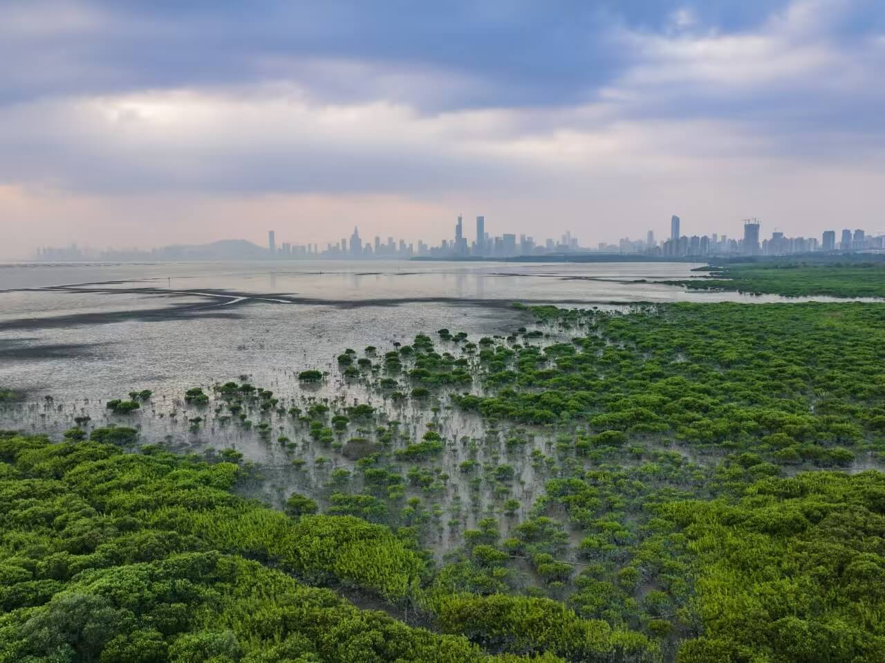 2024年7月20日,在深圳内伶仃-福田国家级自然保护区内,大面积的红树林与城市天际线一路之隔。石磊摄