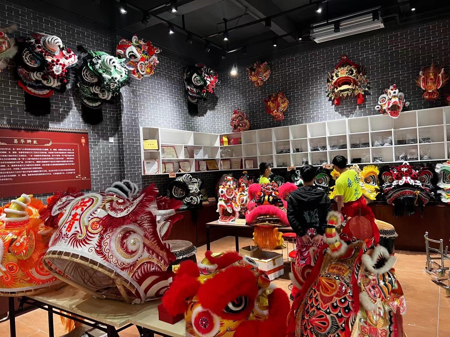 随后,他们在颜峰社区设厂经营狮鼓皮加工、狮头制作、狮艺用品等,叶氏兄弟因此成为南海小有名气的狮艺制作高手。