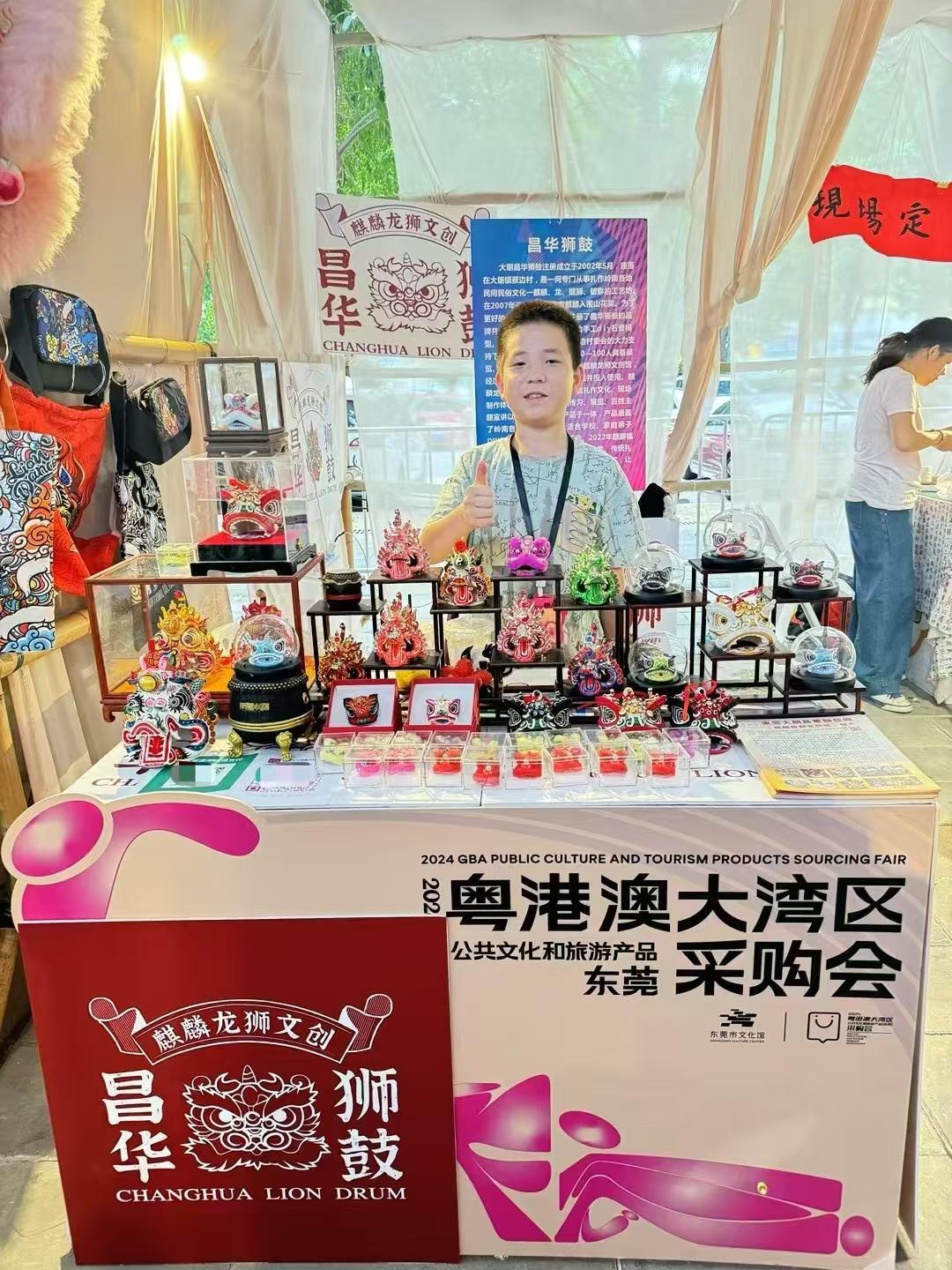 万贡学带儿子到采购会展示文创产品。