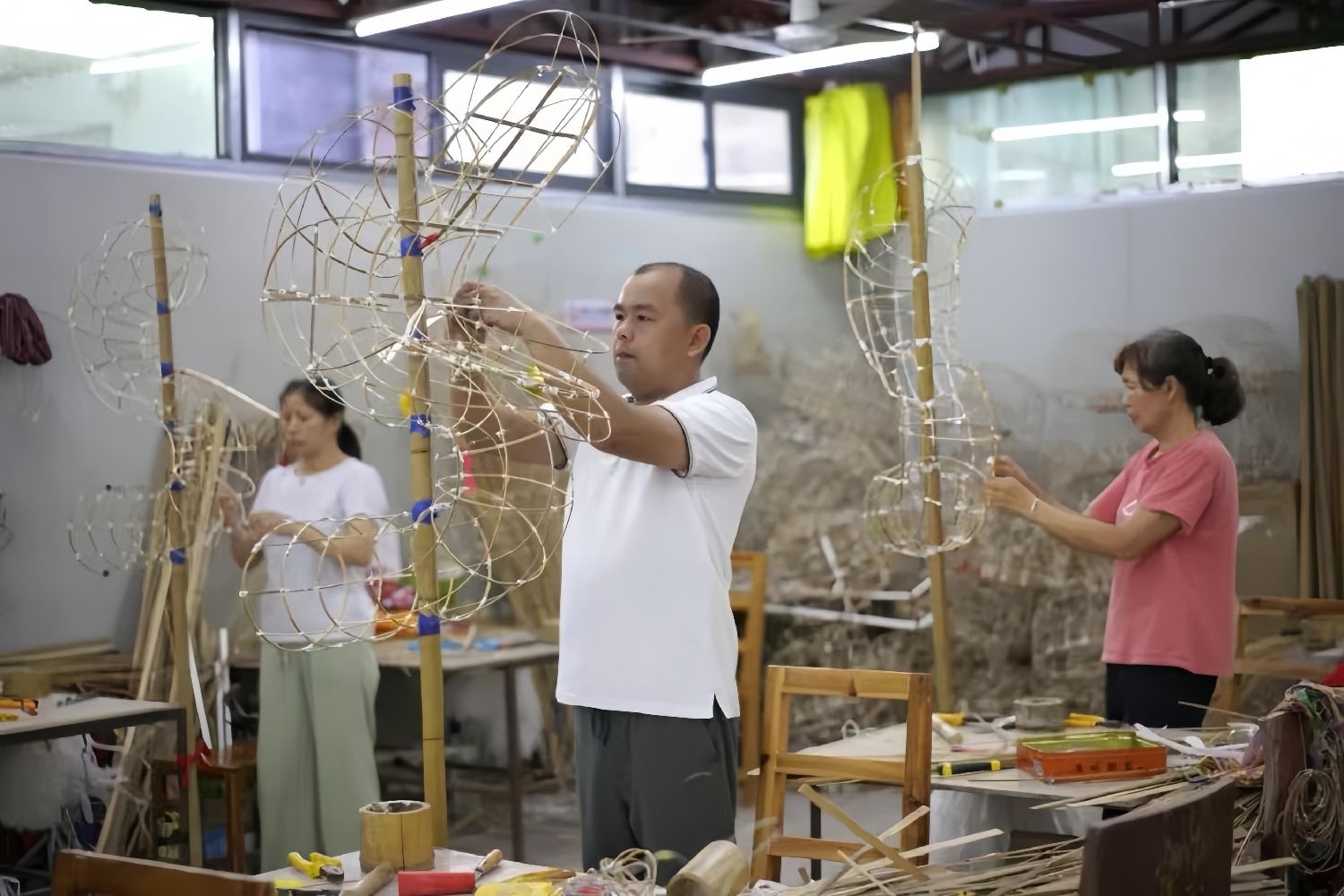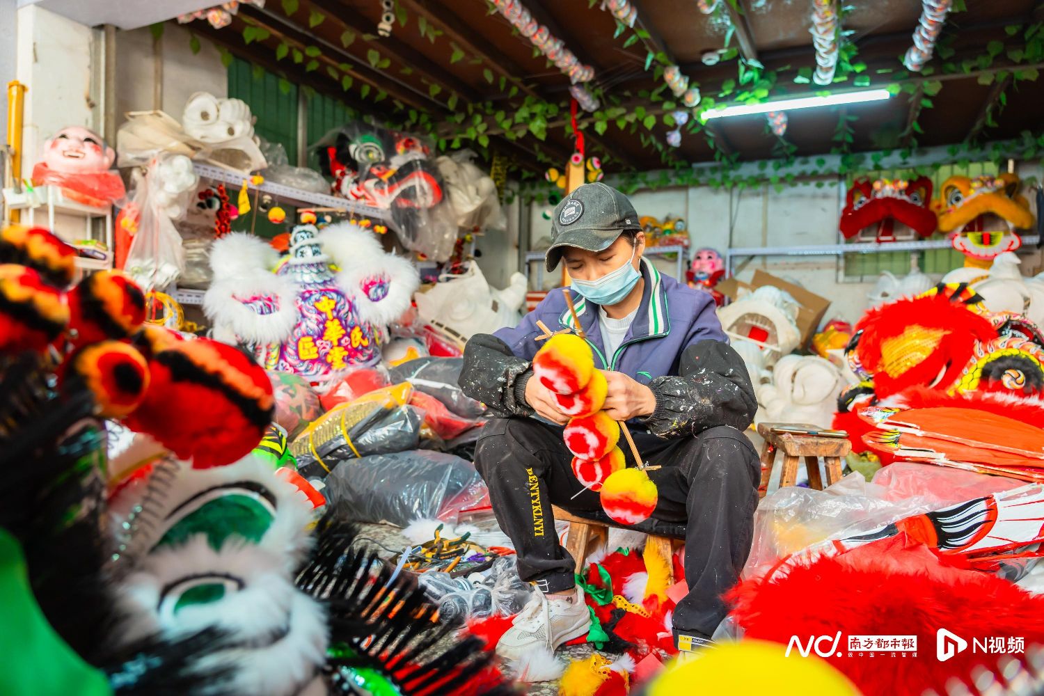 如今,临近新春,订单量大,叶竞循为了节省时间,早早和工人扎好了狮胚,现在只需根据客户需求进行绘饰和装狮。