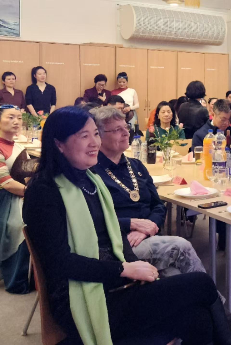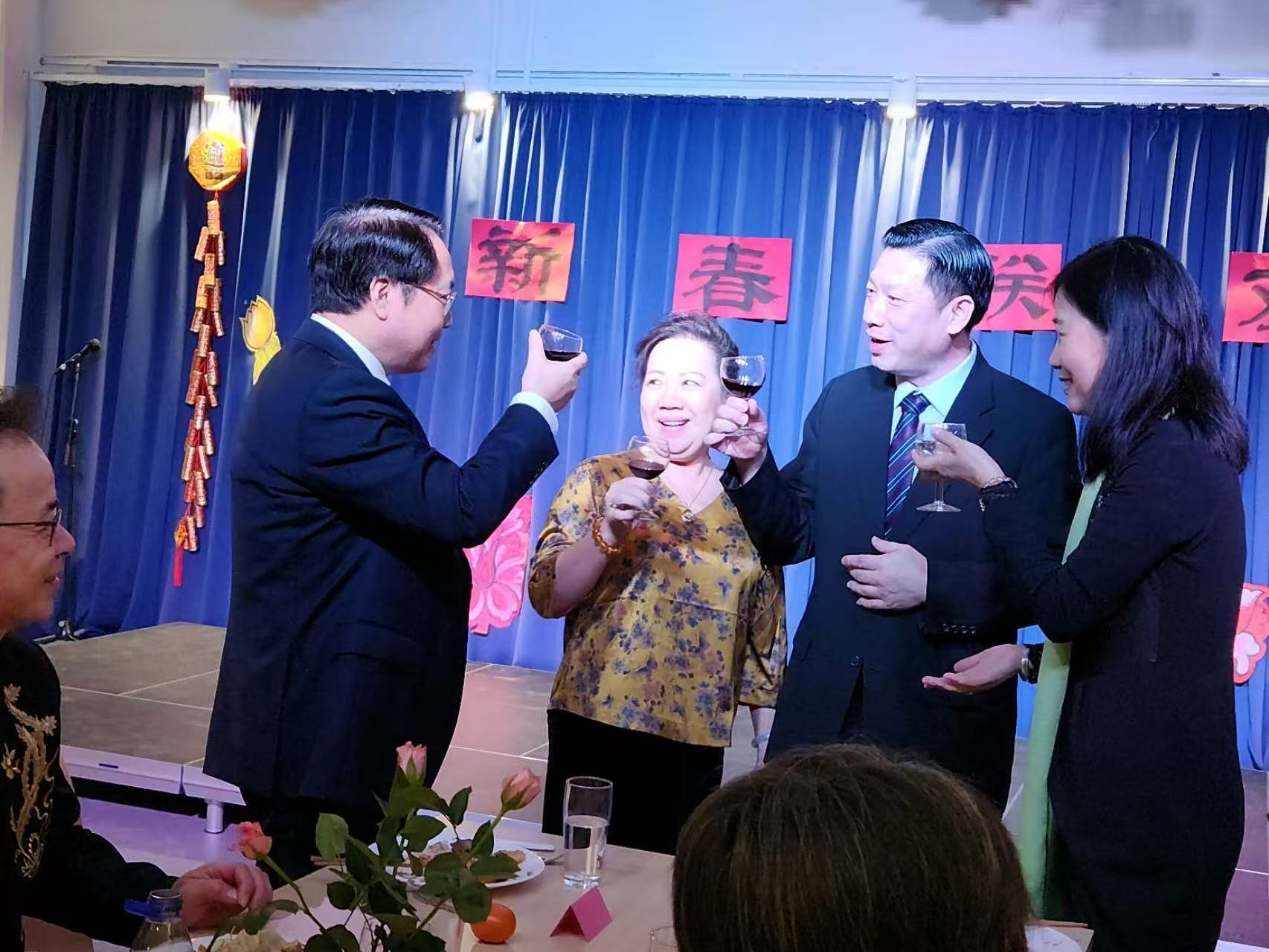 出席这次联欢会的有中国驻丹麦大使馆大使王雪峰和夫人童新、文化参赞梁斌、办公室主任沈昂、Gladesax市长Trine Græse、哥本哈根中国文化中心主任慕享宏和马成赫、爱心家园会长杨慕君、丹麦华商总会陆云彪夫妇、华人总会主席林燕标、首席副主席柯本佑、副主席邓顺欢、林伟、石七娇、老华侨方秀平等等。春节即将到来的喜悦将大家凝聚在此。