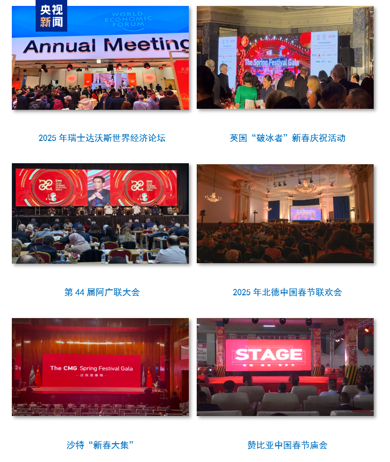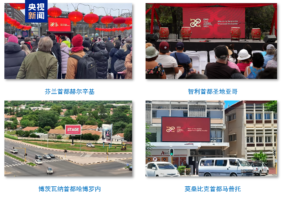 连日来,总台春晚宣传片还陆续亮相2025年瑞士达沃斯世界经济论坛、英国“破冰者”新春庆祝活动、第44届阿广联大会、2025年北德中国春节联欢会、沙特“新春大集”、赞比亚中国春节庙会等活动现场,海外各界共享中国春节、中华文化的独特魅力。