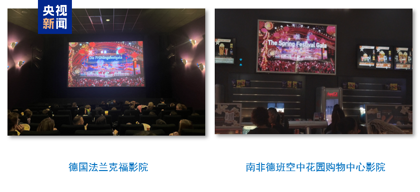 登陆院线!总台春晚宣传片首次登陆英国伦敦市中心影院、德国法兰克福等10个城市影院,南非约翰内斯堡、开普敦及德班3大城市影院首次联动播放春晚宣传片。美国纽约、华盛顿、旧金山、洛杉矶、休斯敦5大城市78家影院以及俄罗斯莫斯科、圣彼得堡等10个城市20家影院在多部热映影片开始前播放总台春晚宣传片。