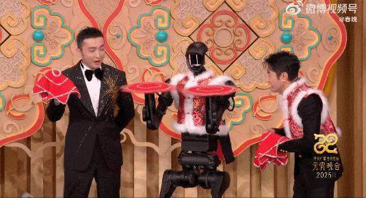 扭秧歌的机器人再次亮相,撒贝宁穿上花马甲,和机器人挽手出场,还表演转手绢!网友直呼:你可以永远相信撒老师的整活!