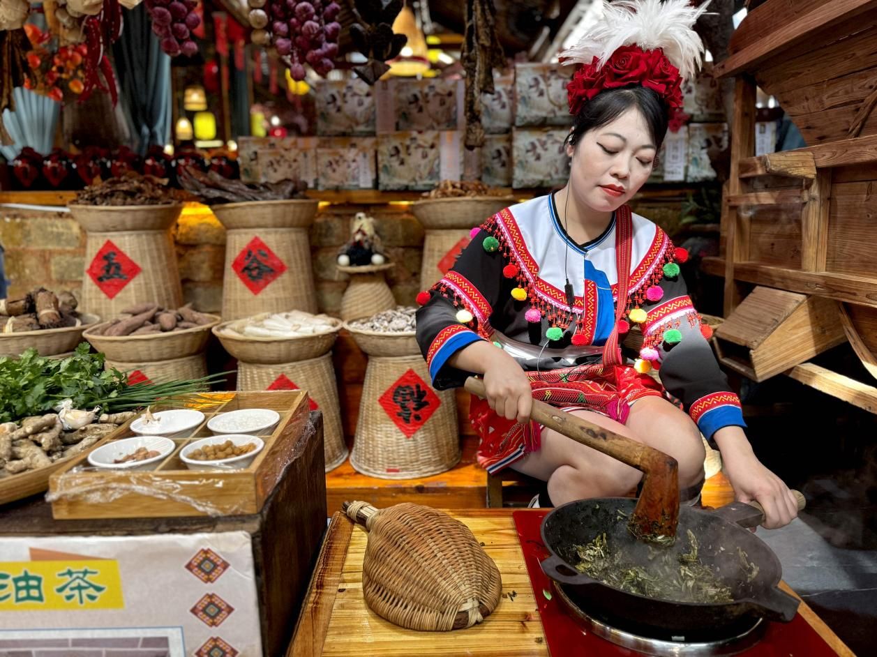 A Yao girl cooks a local ginger-tea dish at a restaurant in Liannan County, Qingyuan, Guangdong, Thursday, November 14, 2024. (Photo: Michael Nelson)