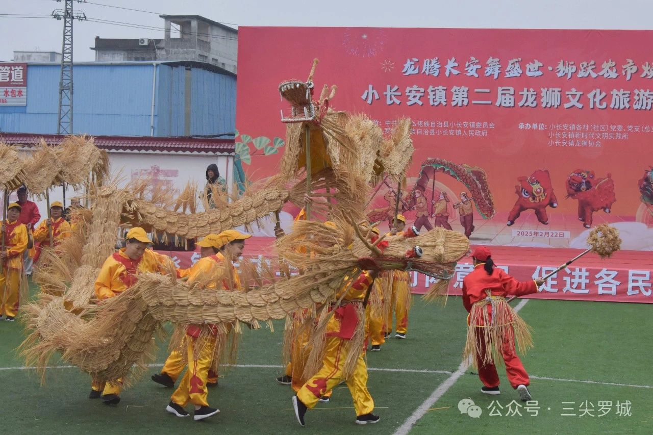 开幕式上,锣鼓震天,彩旗飘扬。县委领导与小长安镇政府领导、特邀嘉宾的致辞如春雷炸响,吹响乡村振兴的号角。一条灵动的草龙在舞者手中翻腾飞跃,宛若从山水间破土而出,带着泥土的芬芳与山乡的瑞气,矫健的狮子随之起舞,步伐灵动,目光炯炯,锣鼓喧天,仿佛在诉说三尖罗城那千年不息的历史。龙狮竞演的震撼场面,农特产品展销的琳琅满目,美食一条街的香气扑鼻,无不让人沉醉。小长安虽小,却藏着彼“大长安”的风韵——那是一种大汉文化与少数民族乡村文化的深情结合,一种民族精神的生动绽放。