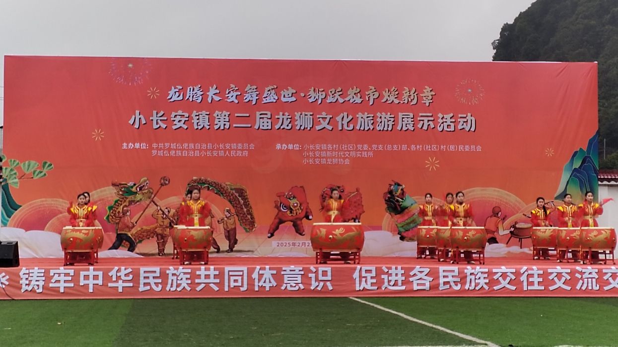 (本报特约梦呜小长安报道)在广西罗城仫佬族自治县的怀抱中,有一方被青山绿水环绕的净土——小长安镇。这里,山峦叠翠,江水潺潺,宛若一幅未经雕琢的天然画卷。每逢正月,春风拂过田野,细雨滋润山川,这片世外桃源便迎来一场文化的盛宴——龙狮文化旅游展示活动。2025年2月22日,第二届小长安龙狮共舞文化节如期而至,以更恢弘的气势、更浓郁的乡土气息,向世界展示仫佬族文化的千年魅力。