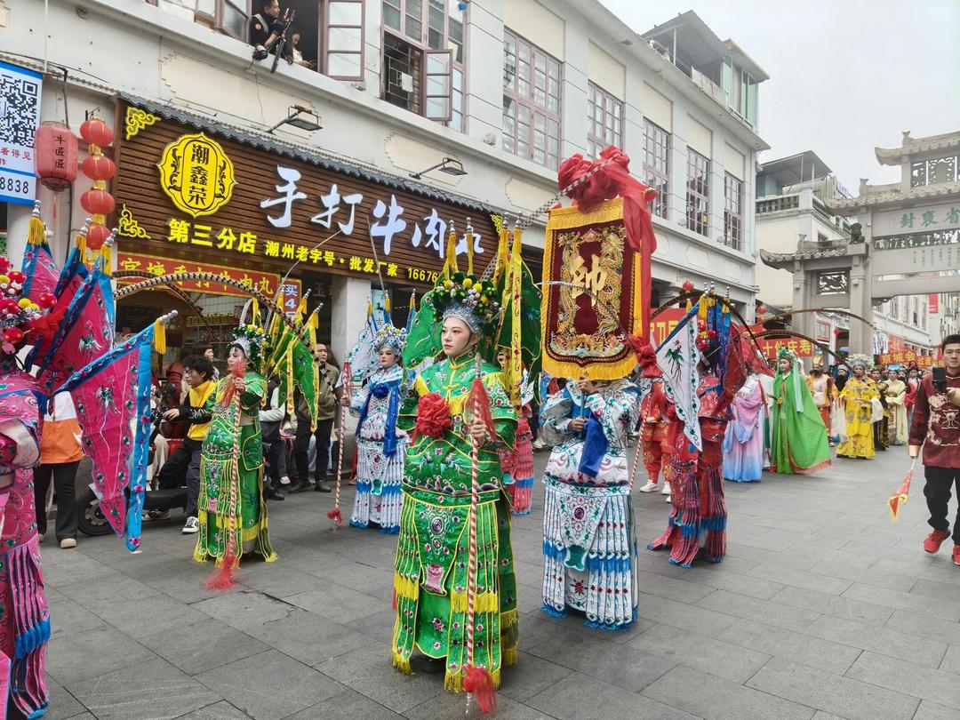 2月21日(正月廿四)上午8时,2025年潮州市青龙庙会非遗巡游活动精彩上演,潮州音乐、潮州大锣鼓、英歌舞等数十项非遗表演轮番上场,让市民游客更近距离感受潮州传统文化、民俗表演的魅力。