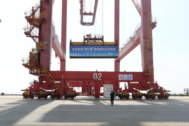 去年9月,“并行港”物流模式下的货物在湛江港吊装。图源新华社