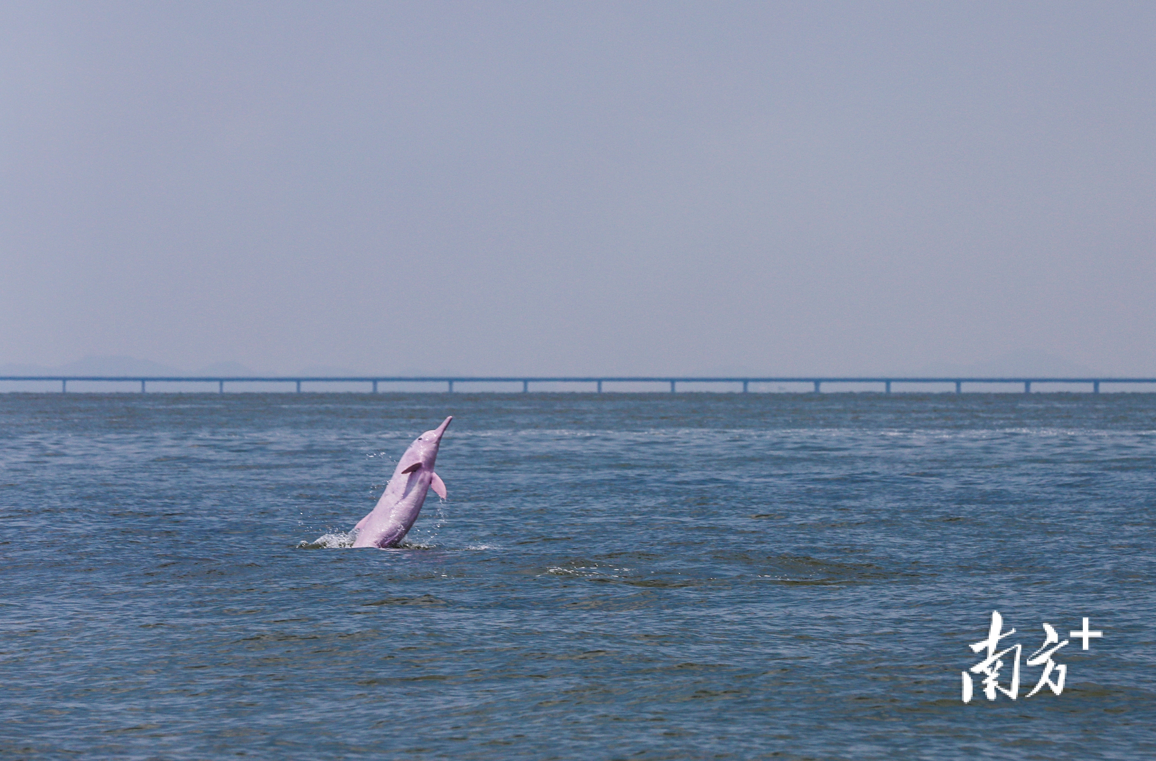 《豚跃虹湾》广东珠海,港珠澳大桥附近海域,中华白海豚跃出海面。中华白海豚,国家一级保护动物,被誉为“水上大熊猫”。张由琼摄