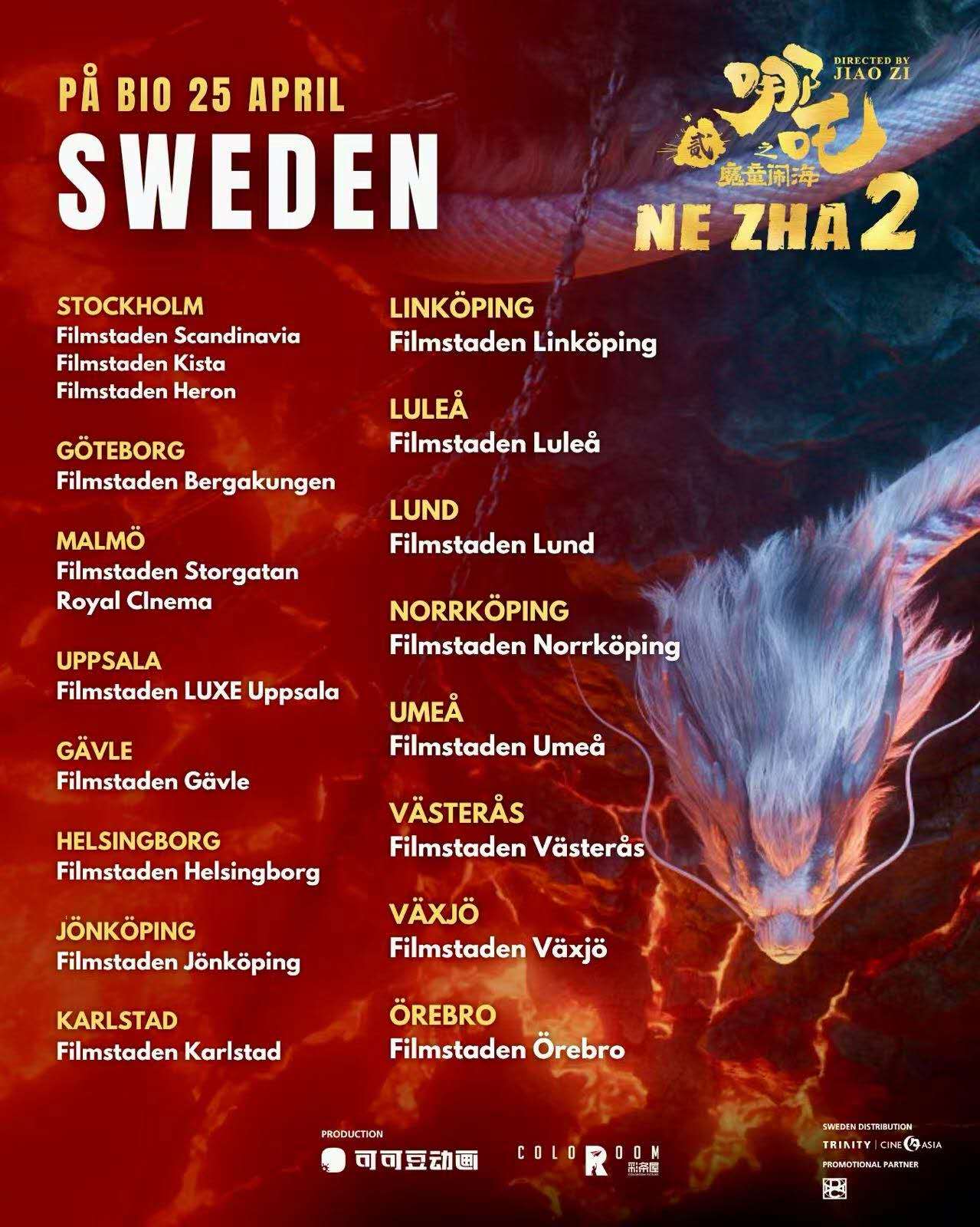瑞典购票网站:https://www.filmstaden.se/film/ne-zha-2/?date=2025-04-25