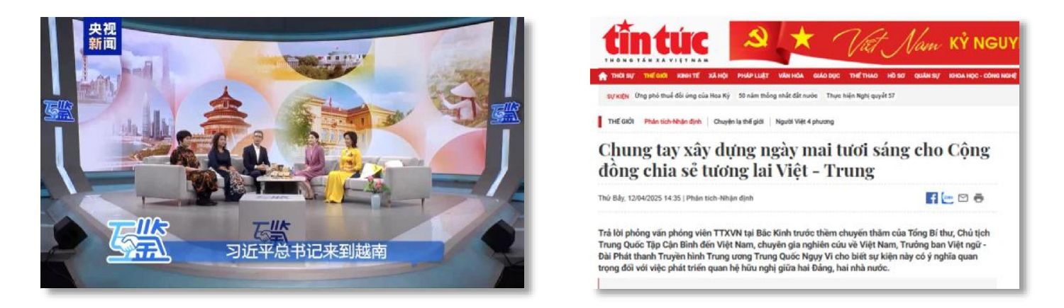 总台多样态融媒体产品丰富立体、语态鲜活,多维度展现中越命运共同体传承于长久的传统情谊、植根于丰厚的合作沃土、推进于密切的人文交流,生动诠释了全球南方国家团结合作的意蕴。