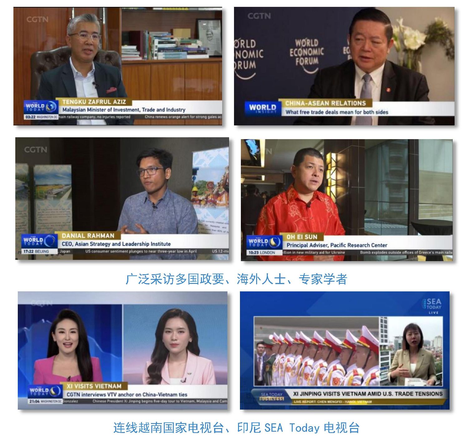 “好伙伴”团结合作。CGTN《对话》《来自“全球南方”的声音》等栏目广泛采访多国政要、海外人士、专家学者,展现国际社会对习主席此访的高度关注和积极评价,解读面对变乱交织的国际形势,构建中越命运共同体具有重要世界意义。多语种记者、评论员与越南、马来西亚、印度尼西亚等多国主流媒体直播连线,积极宣介中国与周边国家合作共赢的生动实践,阐明“小船孤篷经不起惊涛骇浪,同舟共济方能行稳致远”。