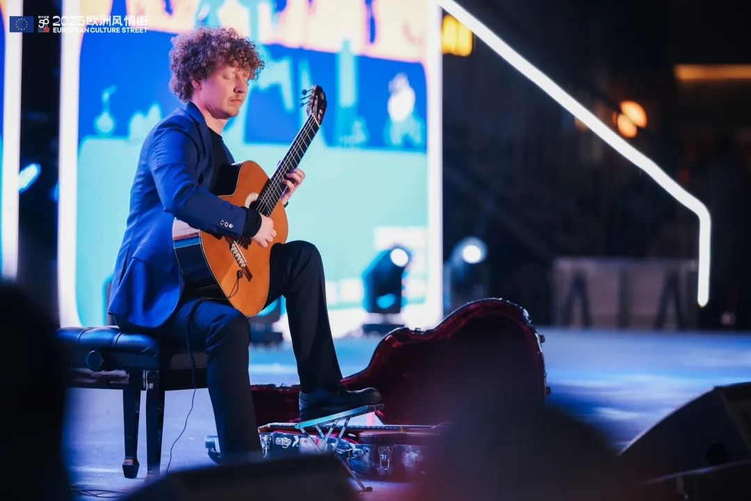 活动当天,瑞典古典吉他演奏家Johannes Möller现场演奏了《送别》等曲目,动听的旋律为这场文化盛宴画上了诗意的一笔,赢得观众阵阵掌声。