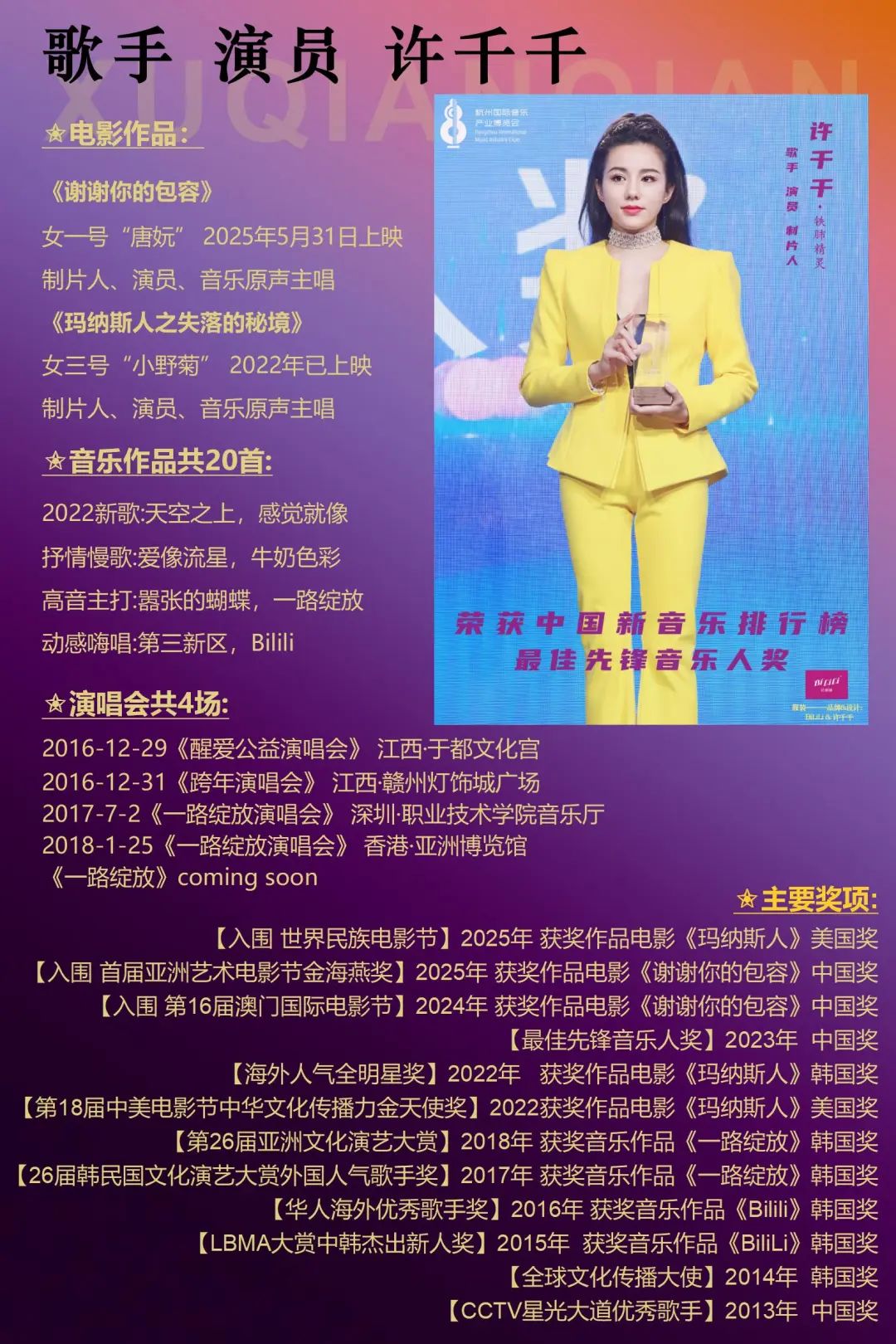 从歌手到制片人、演员、音乐人,许千千在艺术领域不断突破自我,实现多维探索;陈光平先生则以文字为笔,为影片音乐注入灵魂。两人的携手合作,让《玛纳斯人》在电影与音乐层面均展现出极高水准。此次电影与音乐双线入围世界民族电影节,标志着中国影视工业正从单纯的“输出产品”向深度“输出文化价值”转型升级,为中国影视“走出去”树立了新的标杆。