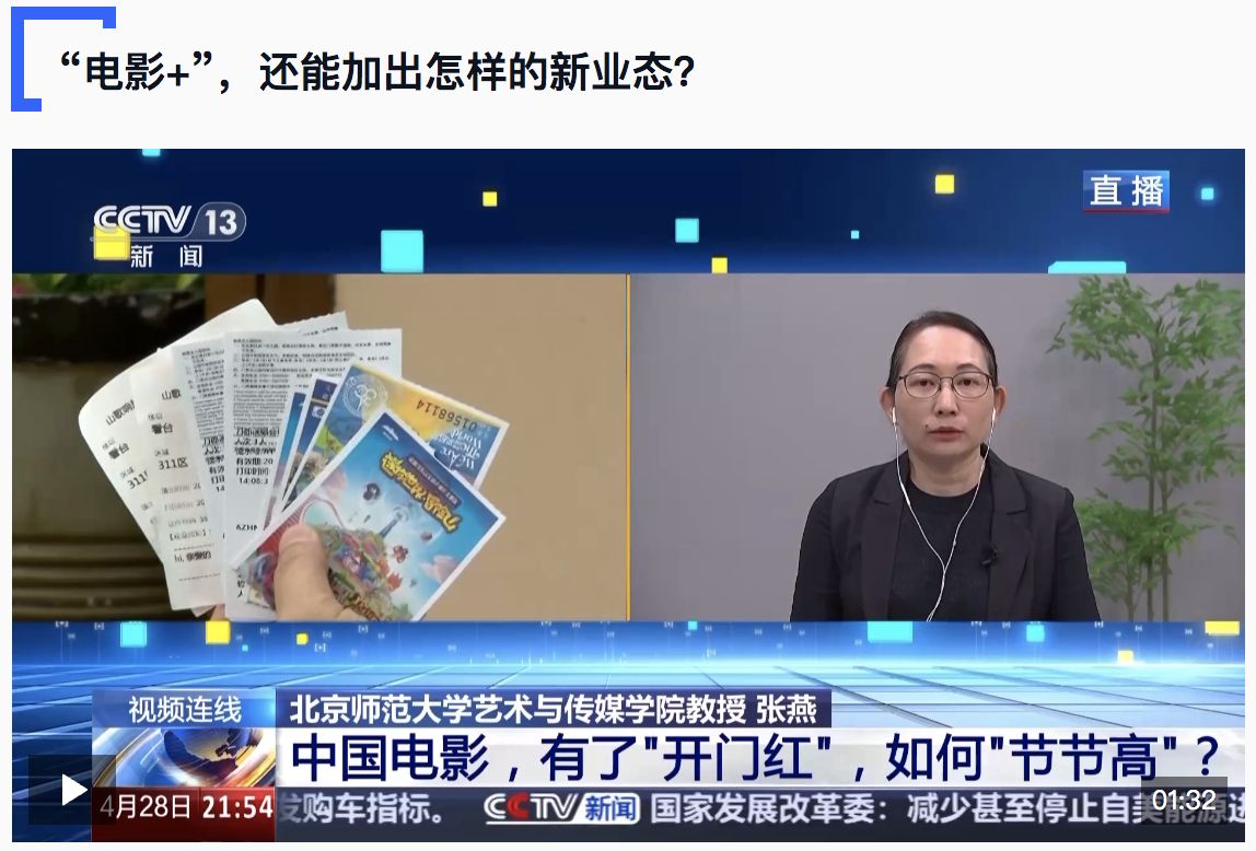 北京师范大学艺术与传媒学院教授张燕:目前来看,电影消费仅指的是我们看电影本身的消费。但事实上,电影消费涉及方方面面,我们的消费还远远没有得到很好的开发。在电影行业衍生的链条当中,包括玩具、主题公园、服饰,还有衍生品等层面。我想当看完一个好电影,观众是有意愿去购买相关消费品,比如海报、玩具,尤其食品、主题公园等,孩子们也都会感到好奇。另外,我觉得电影的消费也不仅仅局限在电影行业,它可以带动其他衣食住行各个行业。比如说在某部影片的拍摄地,它非常具有辨识度和地域性,景观或者城市,让人能够感受到很多历史文化内涵,对观众有一种独特的吸引力,浪漫感,我想大家看完电影后,就真有可能会去那里旅游,参观景观拍照打卡,品尝当地美食,未来我们需要关注和重视这些潜力巨大的消费环节。业内也有“1:4.8”的说法,即门票花费1元就能带动同期周边消费4.8元。我想电影作为一种文化产品,也可以更好地带动消费的整个链条。