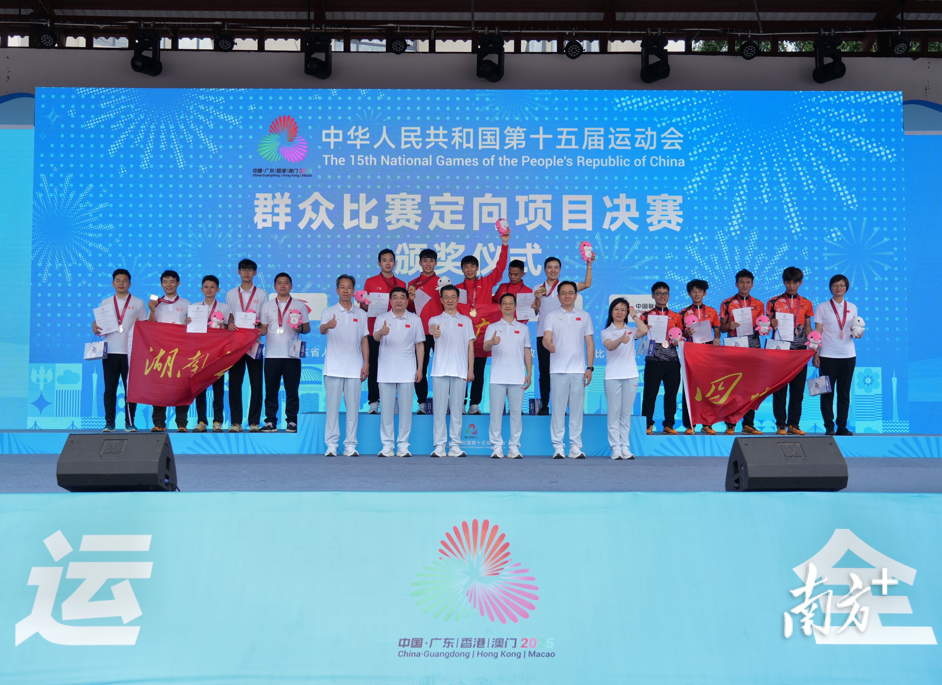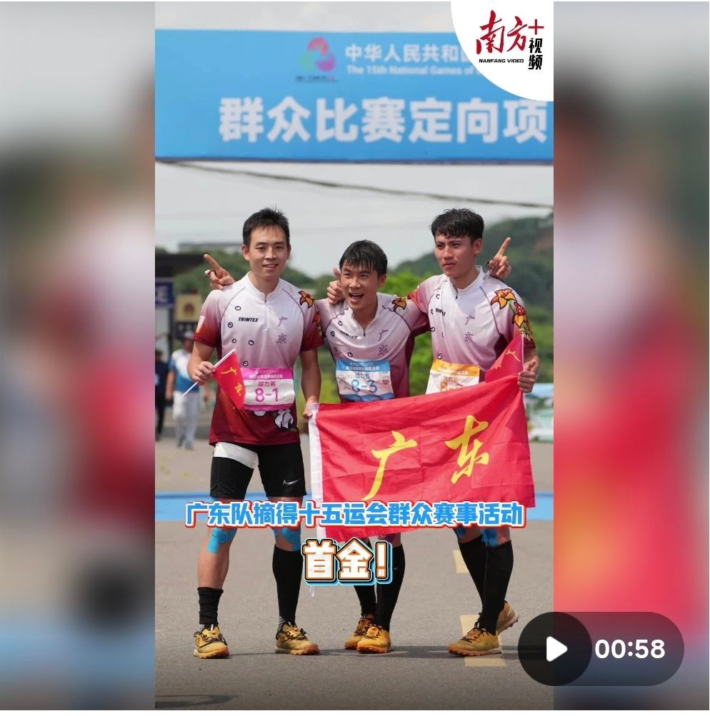 5月8日上午,第十五届全国运动会群众赛事活动定向项目决赛在茂名拉开帷幕。在当天上午进行的定向男子接力赛中,由唐建达、唐潇、李卓业和陈鑫(替补)组成的广东队发挥出色,以1小时43分19秒夺得冠军。这也是第十五届全国运动会群众赛事活动首枚金牌。