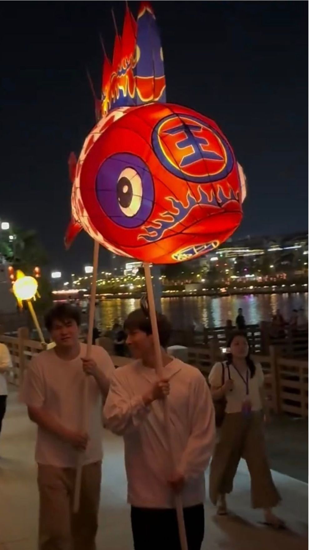河源的新丰江畔,千盏鱼灯点亮夜色,首届鱼灯夜游主题活动以光影为笔,描绘出传统与现代交融的诗意画卷。