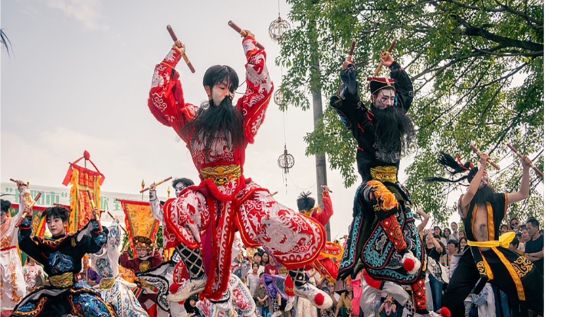 揭阳榕江西湖的非遗盛宴热闹非凡,英歌舞的铿锵鼓点、舞龙舞狮的翻腾跃动,让游客们如同穿越时空,触摸到文化的脉搏。