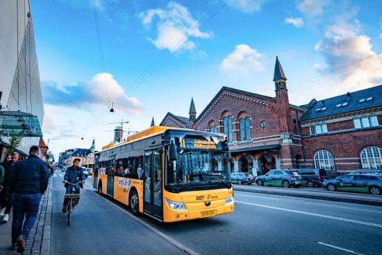 行驶在丹麦街道上的中国品牌纯电动客车(资料图)
