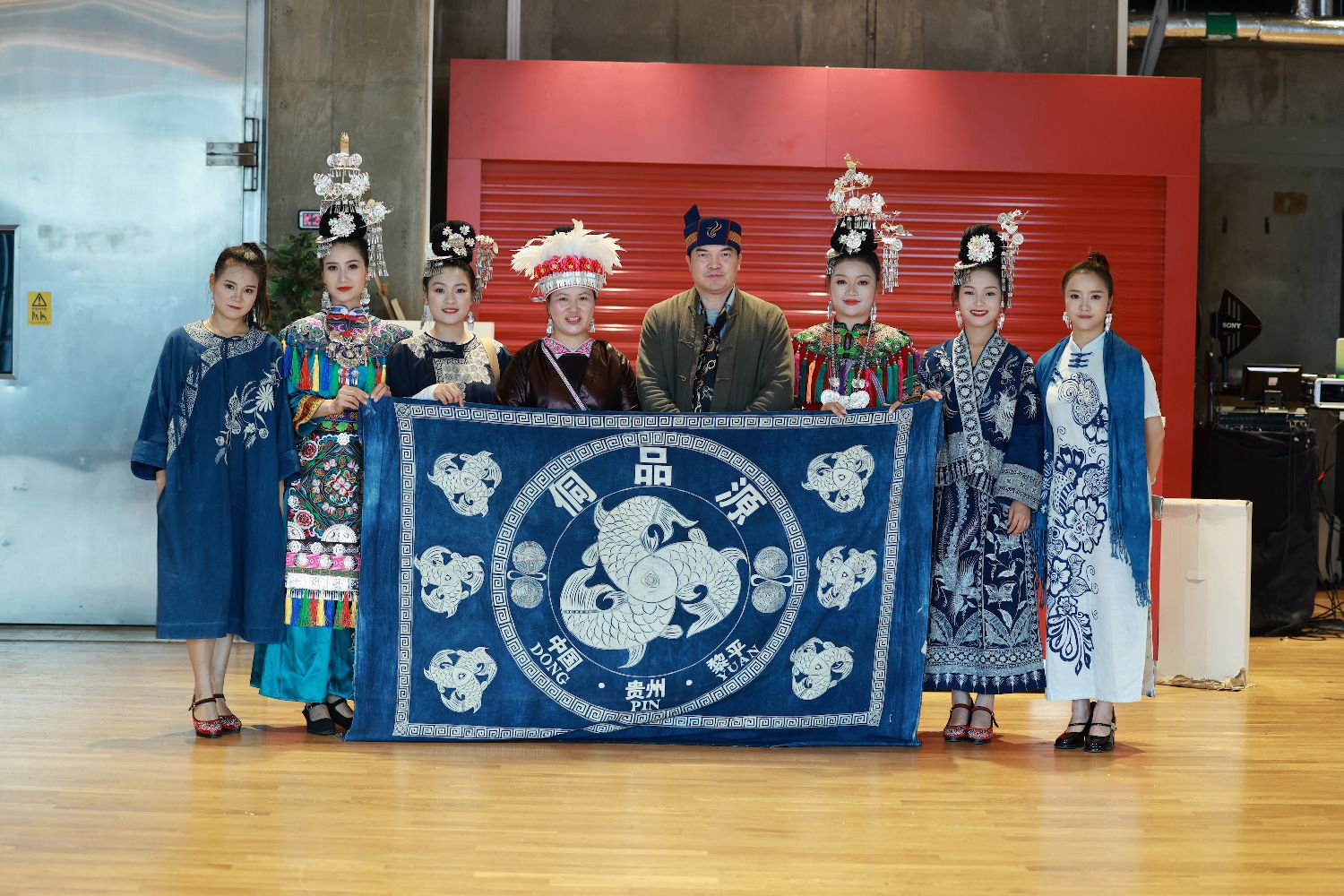 活动现场,伴随着背景大屏中层峦叠嶂、溪流缠绕的黔地影像,身着绣花百褶裙与银饰冠的苗族与侗族演员依次登场。她们穿着蓝色对襟衣饰,腰束彩带,头戴花银,翩然起舞,一举一动都仿佛带着来自云贵高原的山风,将远方山寨的鼓声与茶香一同带入观众的心田。